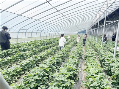 莱西市日庄镇半亩花田家庭农场内,游客正在采摘。