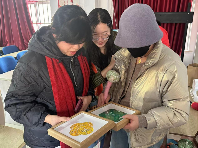 活动现场还设置了非遗展示区,陈列着多种非遗手工艺品。居民们对此兴致浓厚,细细端详,与讲师交流探讨这些手工艺品的工艺特色与文化内涵。