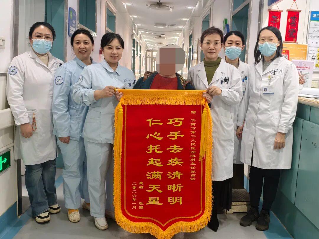 此次高难度联合手术的成功,不仅为徐奶奶驱散了失明阴霾,也彰显了济南市眼科医院(市二院)青光眼科在处理复杂、危重眼病方面的深厚底蕴与综合实力,为众多遭受类似疾病困扰的患者带来了新的光明希望。医院将继续秉持“精湛医术、全心服务”的理念,守护每一位患者的清晰“视”界。