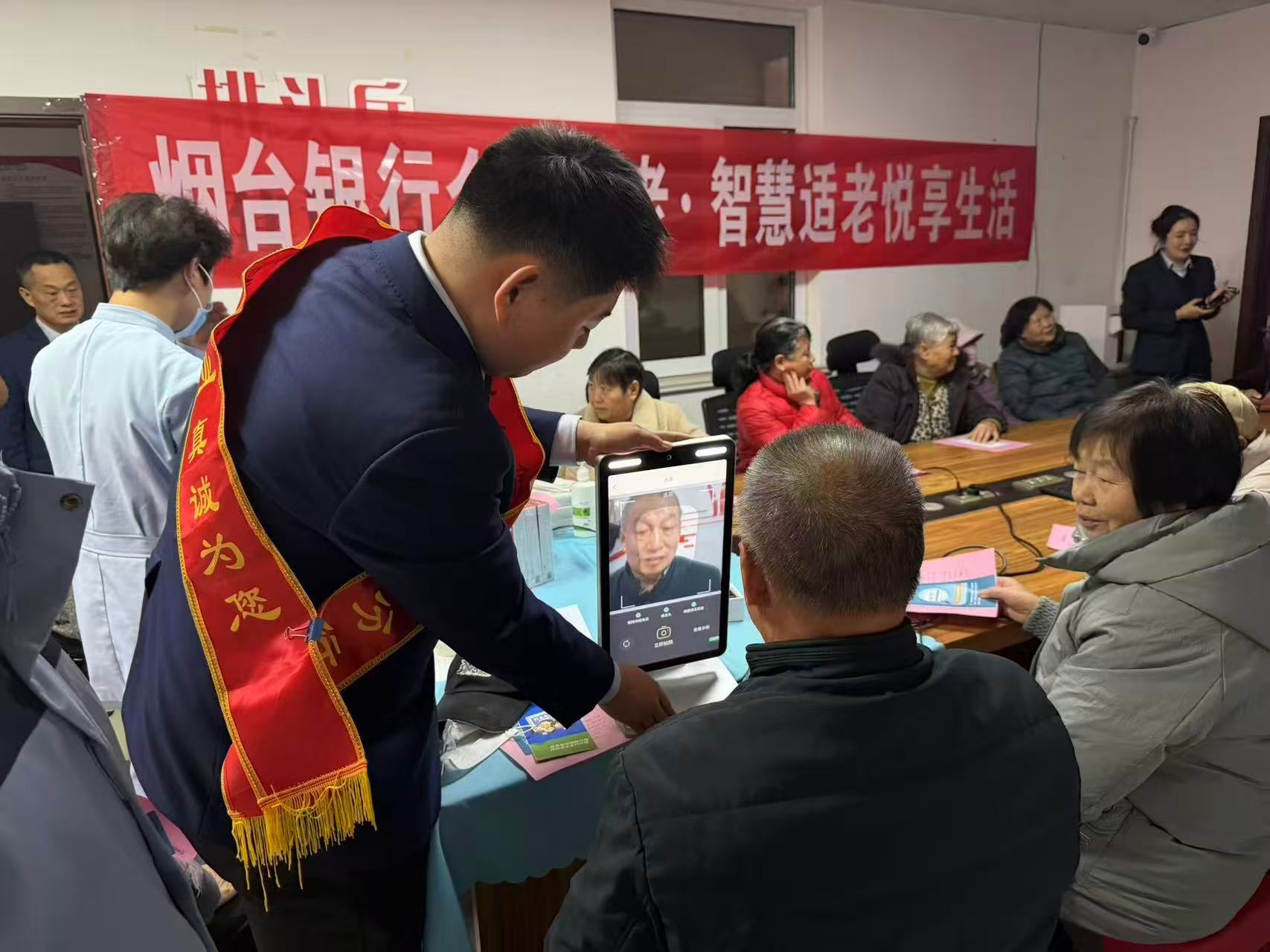 近日,烟台银行走进东营市胜悦社区,开展“金晖暖桑榆·情满壹号院”适老主题公益活动。与以往不同的是,本次活动中一台小巧而智能的AI人体健康检测仪成为全场焦点,让老年朋友在自家门口体验了一把“未来式”健康管理。