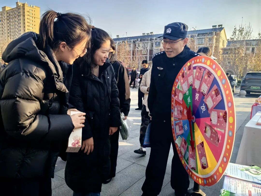 “接到陌生电话,提到钱款一定要警惕!”“骑电动车出门,一定要规范佩戴头盔。根据冬季社会治安特点,巨野公安组织民辅警走进商超、广场、社区、集市,用家常话讲解防盗、反诈、交通知识,结合真实案例,提醒群众守好“钱袋子”、走好“平安路”;在社区广场设置“反诈知识大转盘”等互动环节,用趣味问答检验宣传效果,让安全学习“有料又有趣”;在商超,借助LED大屏播放反诈快板警示片,让群众在购物的同时也能学习反诈知识,提高反诈意识,真正将反诈课堂搬到群众身边。线上通过微信公众号、视频号推送安全常识,线下将反诈贴士融入日常场景,线上线下同频共振,形成“人人讲安全、事事为安全”的浓厚氛围。