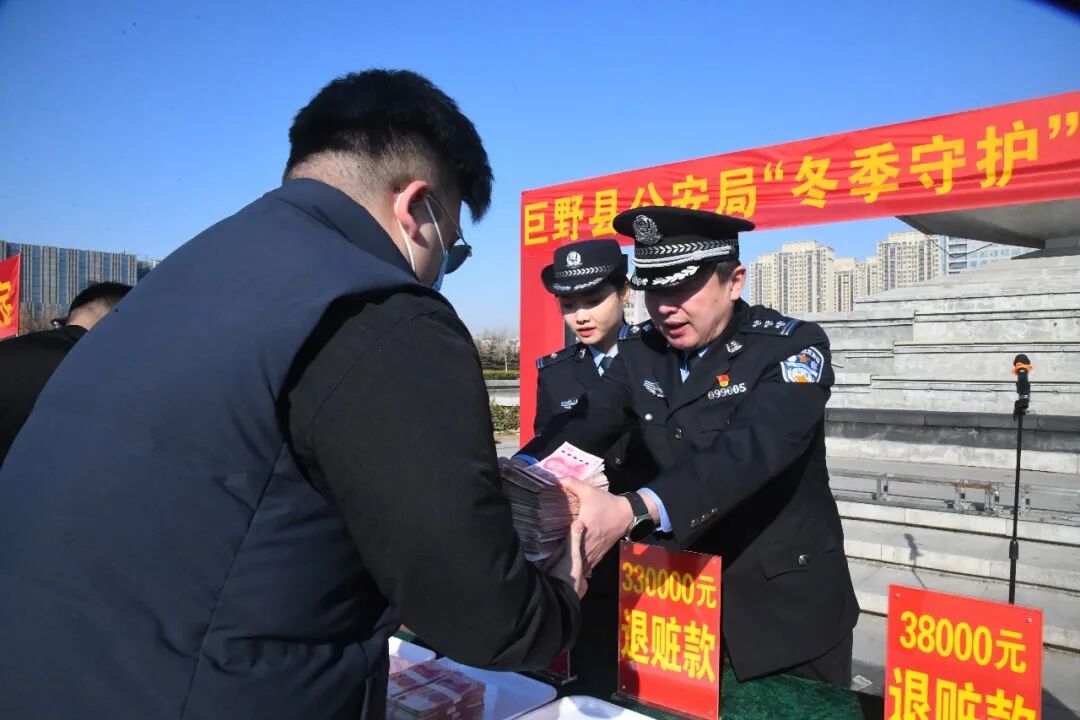 1月9日,巨野县公安局在人民广场举行“冬季守护”集中退赃大会,领回财物的群众对民警们的辛勤付出表示衷心感谢。巨野公安坚持以“保安全、强打击、严防范、守底线”为主线,在打击上出实招、出硬招,在主防上下功夫、见实效,强力推进“冬季守护”见行见效。“冬季守护”行动以来,全县刑事、治安警情同比分别下降24.7%、22.6%,抓获犯罪嫌疑人数同比上升46.9%;全县盗窃案件现案破案率达92.7%、入室盗窃破案率达100%,盗窃类警情同比下降52.3%,社会治安形势稳步向好。