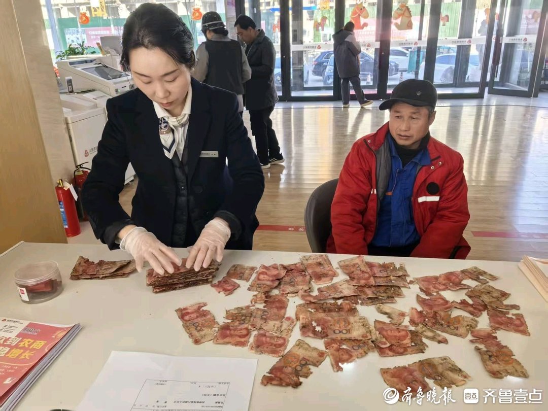 经过数小时努力,工作人员终于将大部分破损纸币拼接完整,并依据中国人民银行残缺污损人民币兑换办法,为老人完成了近万元的纸币兑换。当老人拿到兑换后的崭新人民币时,激动地握住工作人员的手,连声道谢:“太感谢你们了,要是没有你们,这些钱就没了!”
