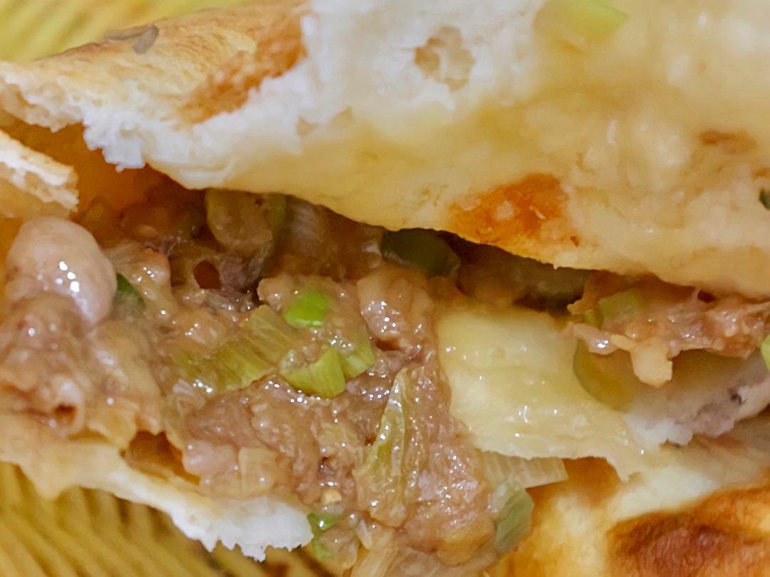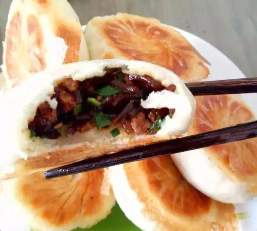 火烧圆滚滚呈金黄色,因为热气和内馅充实而饱满,咬一口满嘴花椒的微麻和葱花的葱香,外酥里嫩。