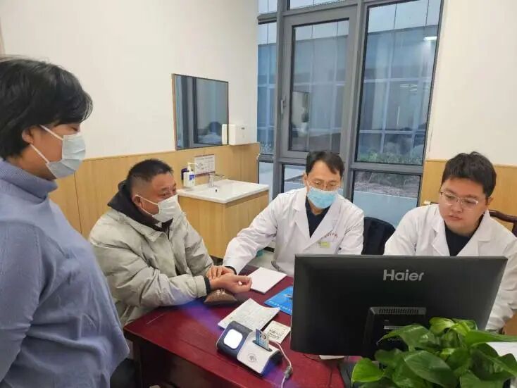 老年病科主任医师杨戈为来自青岛的患者把脉问诊