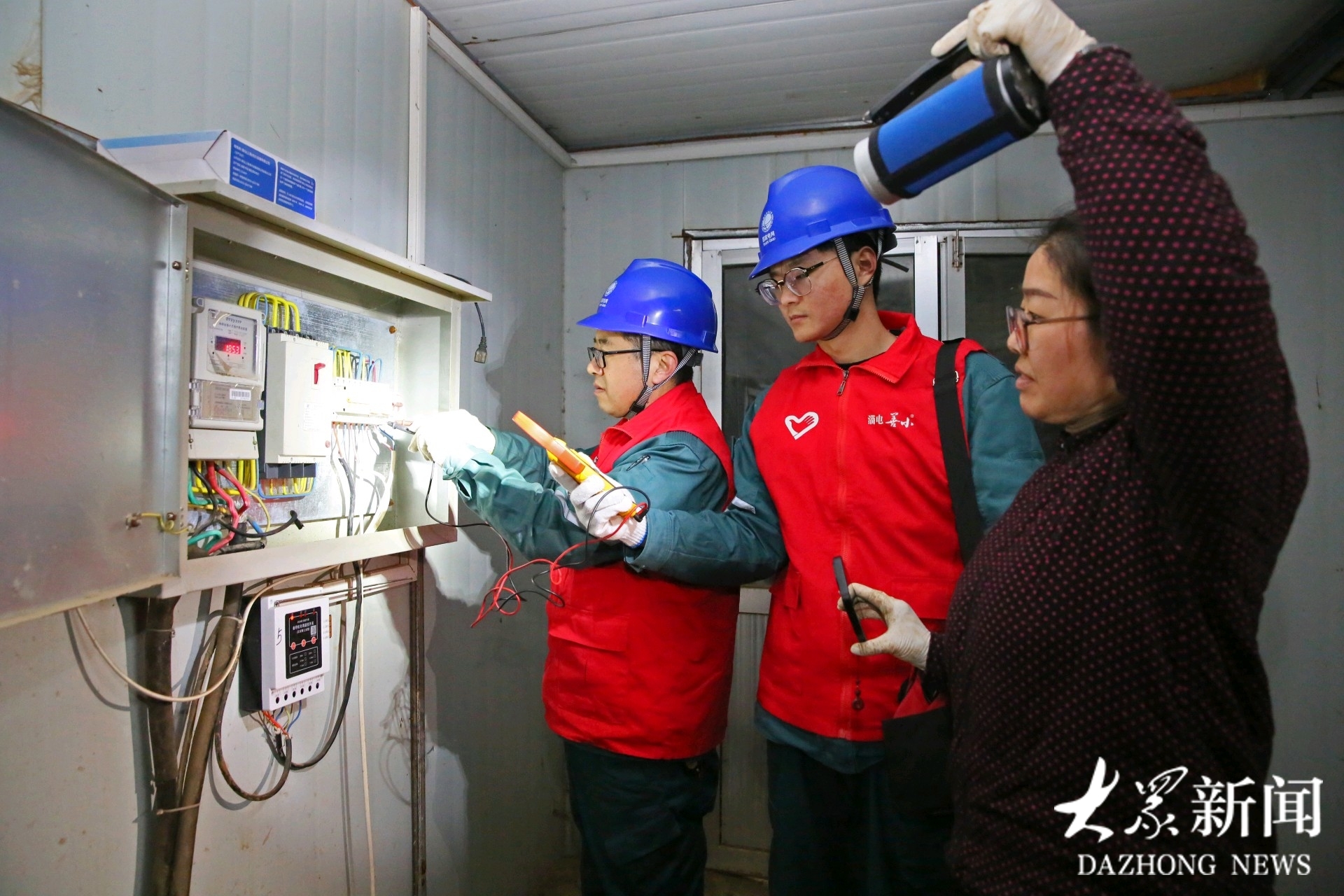 了解到这一情况后,“善小”志愿服务队队员分成两组,一组详细了解种植户的用电特点和需求,记录他们对供电服务的意见建议;另一组则拿着专业设备,对基地的配电箱、线路、开关、插座等用电设施进行全面“体检”。