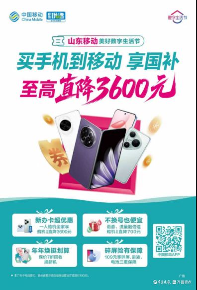 温馨提示:市民可提前通过政府指定平台(微信“惠循环”小程序、爱山东APP)领取补贴券,前往就近移动营业厅选购。详询各厅工作人员。