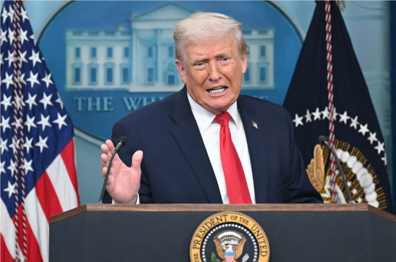 当地时间1月20日,特朗普在白宫出席新闻发布会并发表讲话。 图源:美媒