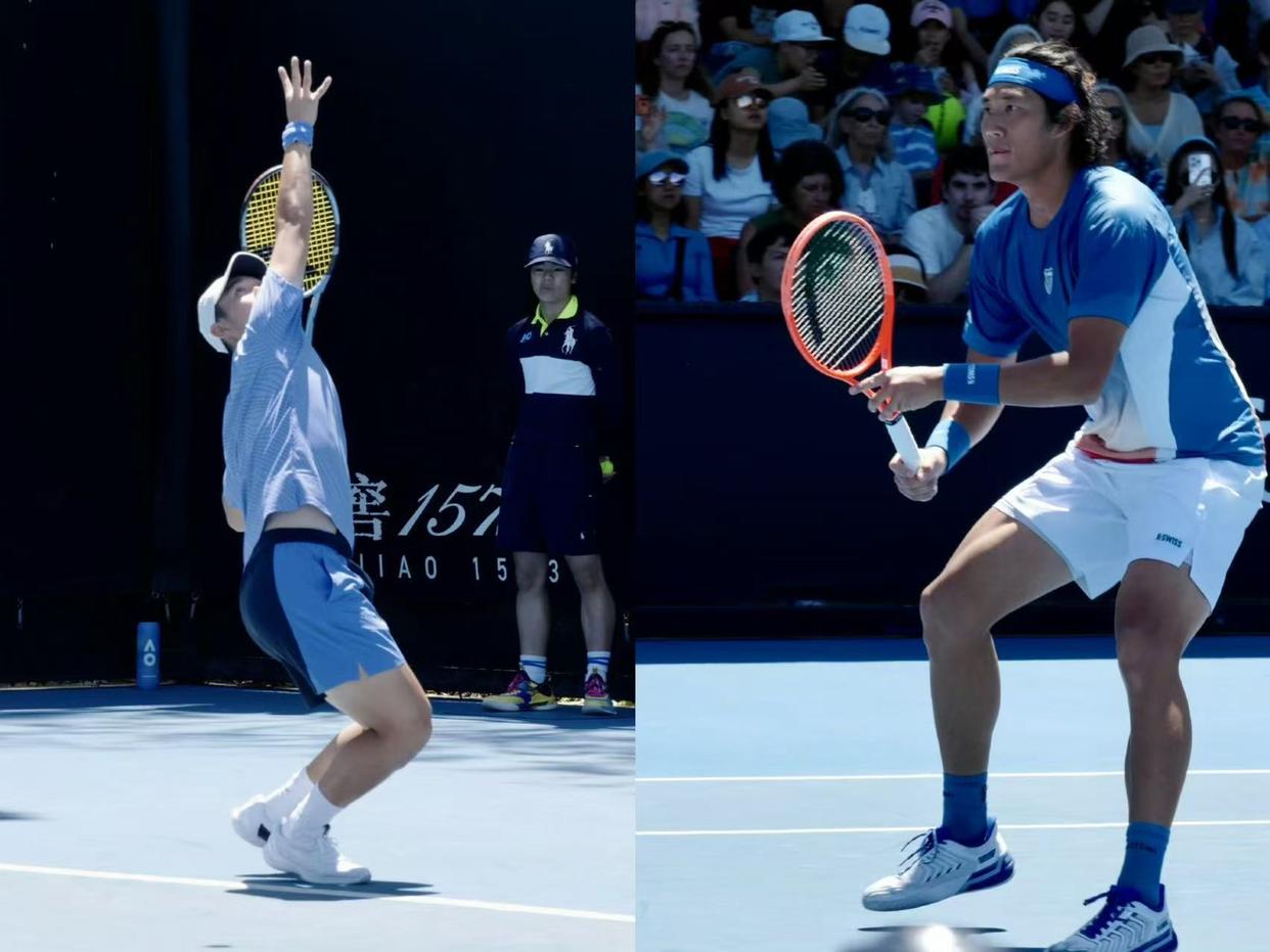 1月21日,2026年澳大利亚网球公开赛男双第一轮,中国组合商竣程/张之臻在14号球场迎战跨国组合埃伯登/拉姆。