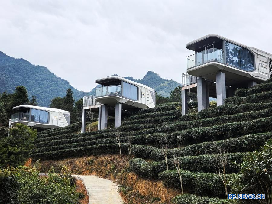 광시 자오핑 췌밍춘(鵲鳴春)유기농다원(茶園)의 캡슐형 펜션. (사진/신화통신)