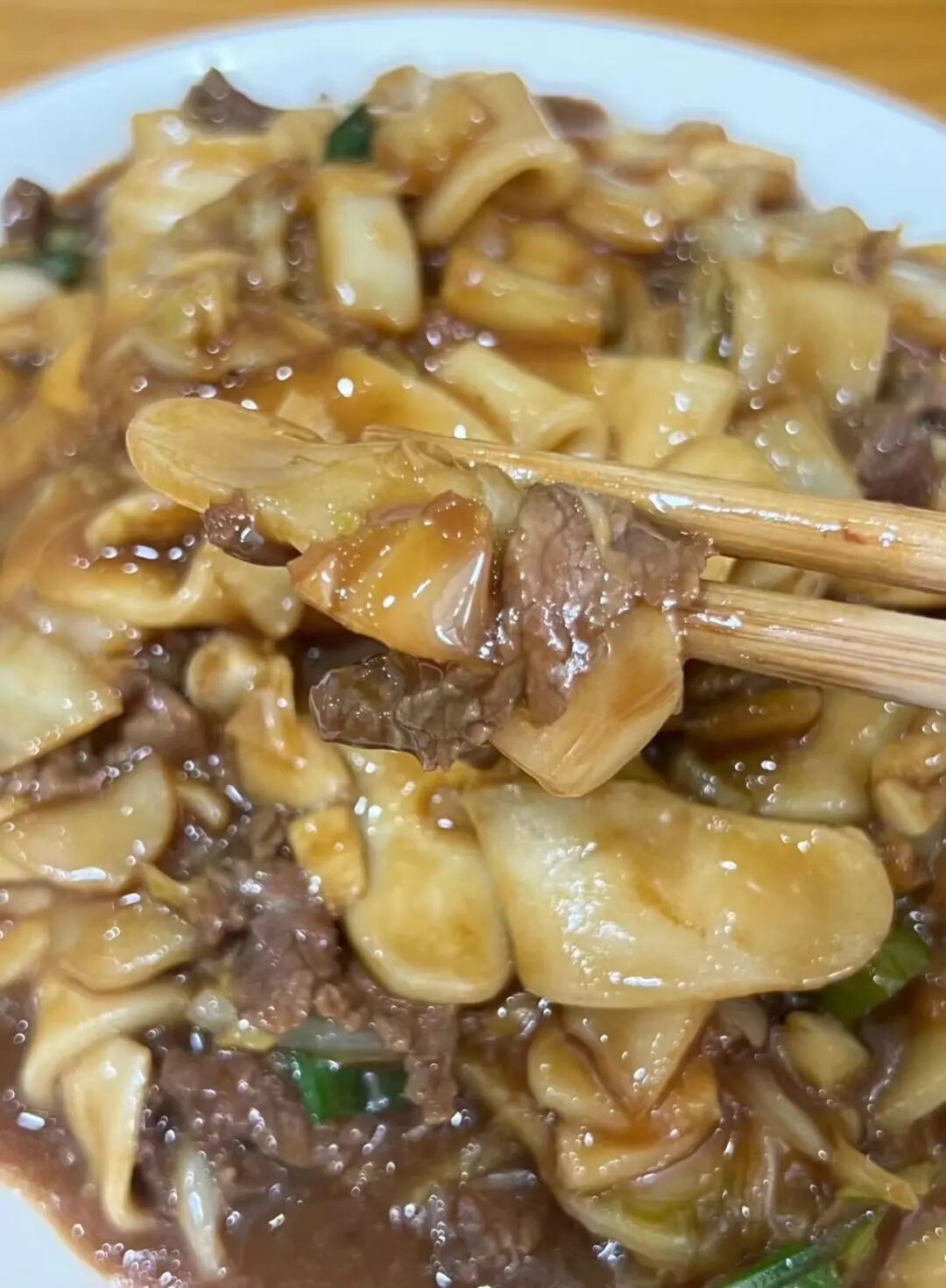 牛肉炒年糕选用上好的糯米年糕和鲜嫩的牛肉片,口感丰富。