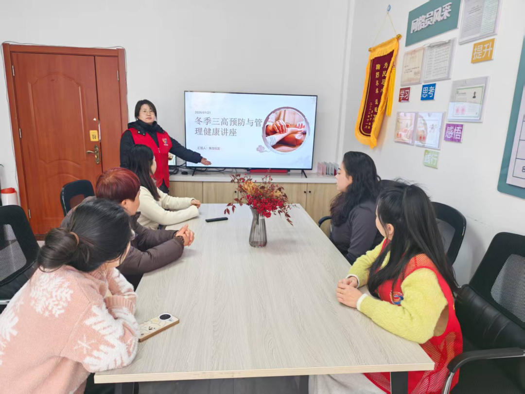 宣讲员王月佳结合冬季气候特点,用通俗易懂的语言,深入浅出地讲解了高血压、高血脂、高血糖(俗称“三高”)的成因、危害以及冬季易发、加重的风险因素。重点强调了冬季在饮食控制、规律作息、适度运动、防寒保暖及情绪管理等方面的注意事项,并给出了切实可行的日常预防建议。