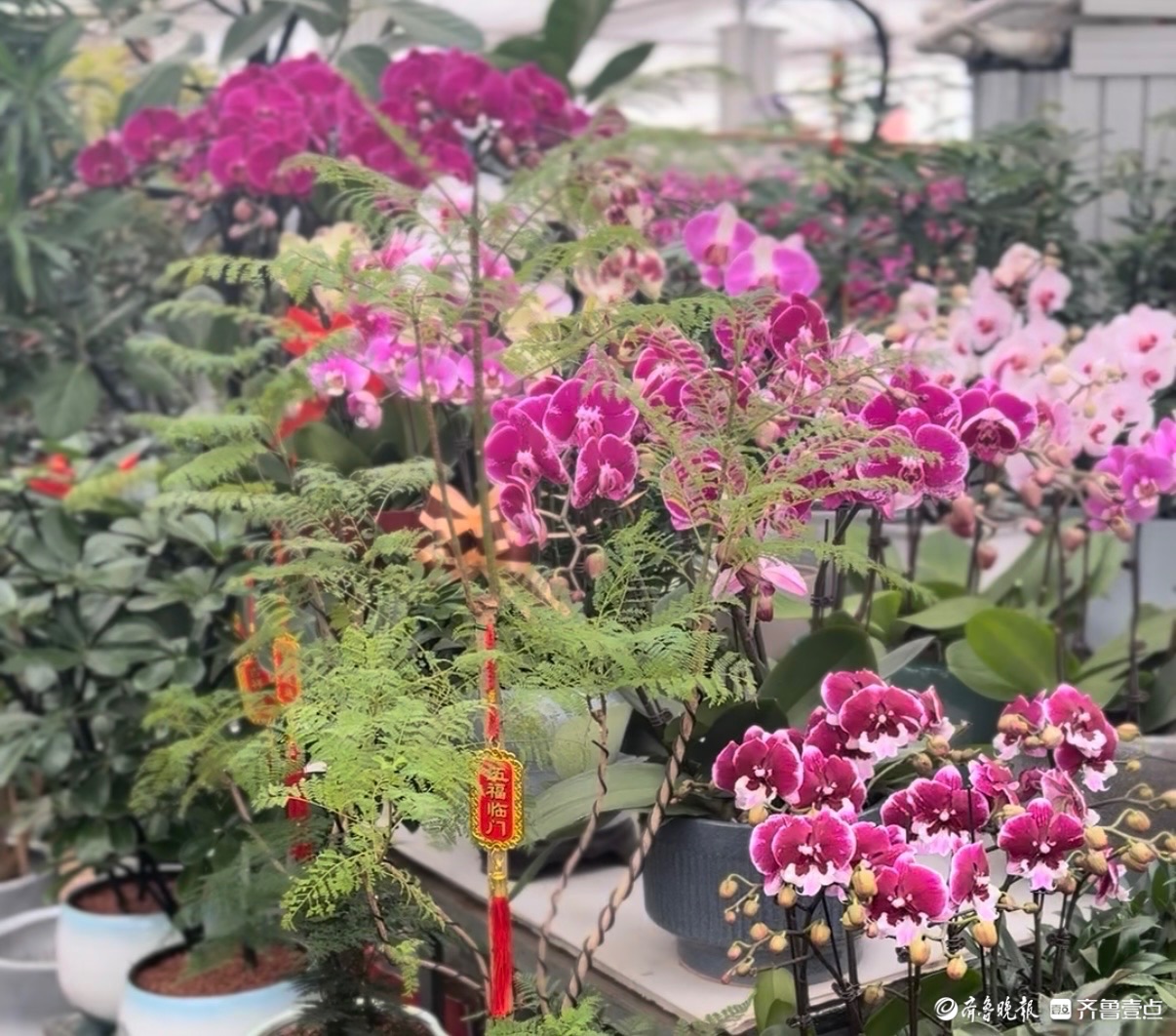 距离2026年农历马年春节还有不到一个月,全国各地的花卉市场早早进入“春节模式”。近日,记者走访济南多个花卉展销市场,姹紫嫣红的年宵花将寒冬装点的春意盎然,既有蝴蝶兰、君子兰、北美冬青等“常青树”稳居C位,也有兜兰、朱顶红等凭借吉祥寓意与新造型悄然走红,还有年轻人喜爱的“高颜值”、“好养活”的多肉盆栽。手推车轱辘声、讨价还价声、修剪花枝的“咔嚓”声交织在一起,奏响了一曲繁忙热闹的“年宵序曲”。