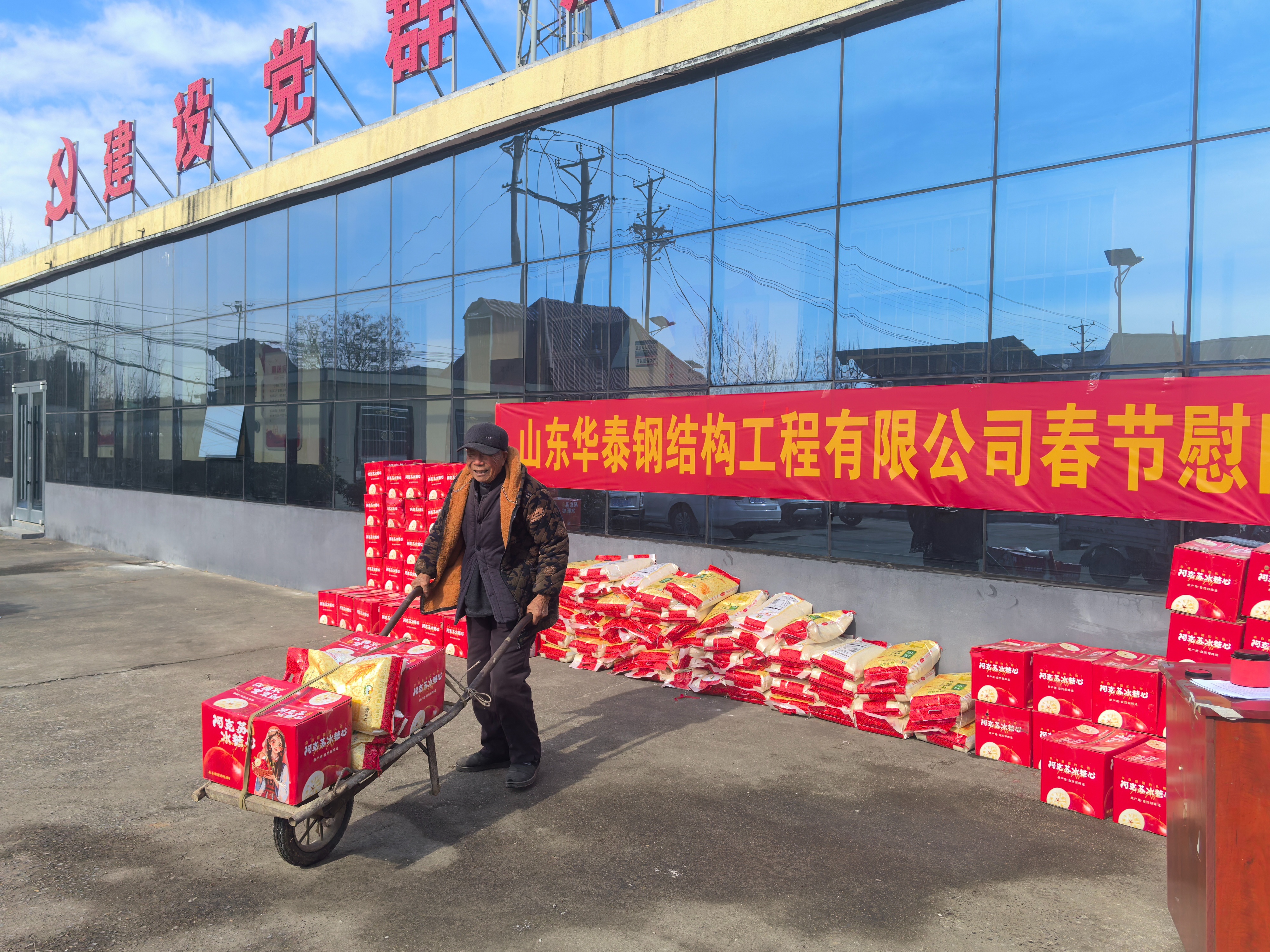 “乡亲们好,山东华泰钢结构工程有限公司老板侯庆波是从咱村走出去的企业家,春节将近,给咱们村65周岁及以上的老人发放过节福利,请大家听到广播抓紧到村委来领。”1月21日上午,临沂沂河新区白沙埠镇建设村大喇叭里传来好消息。