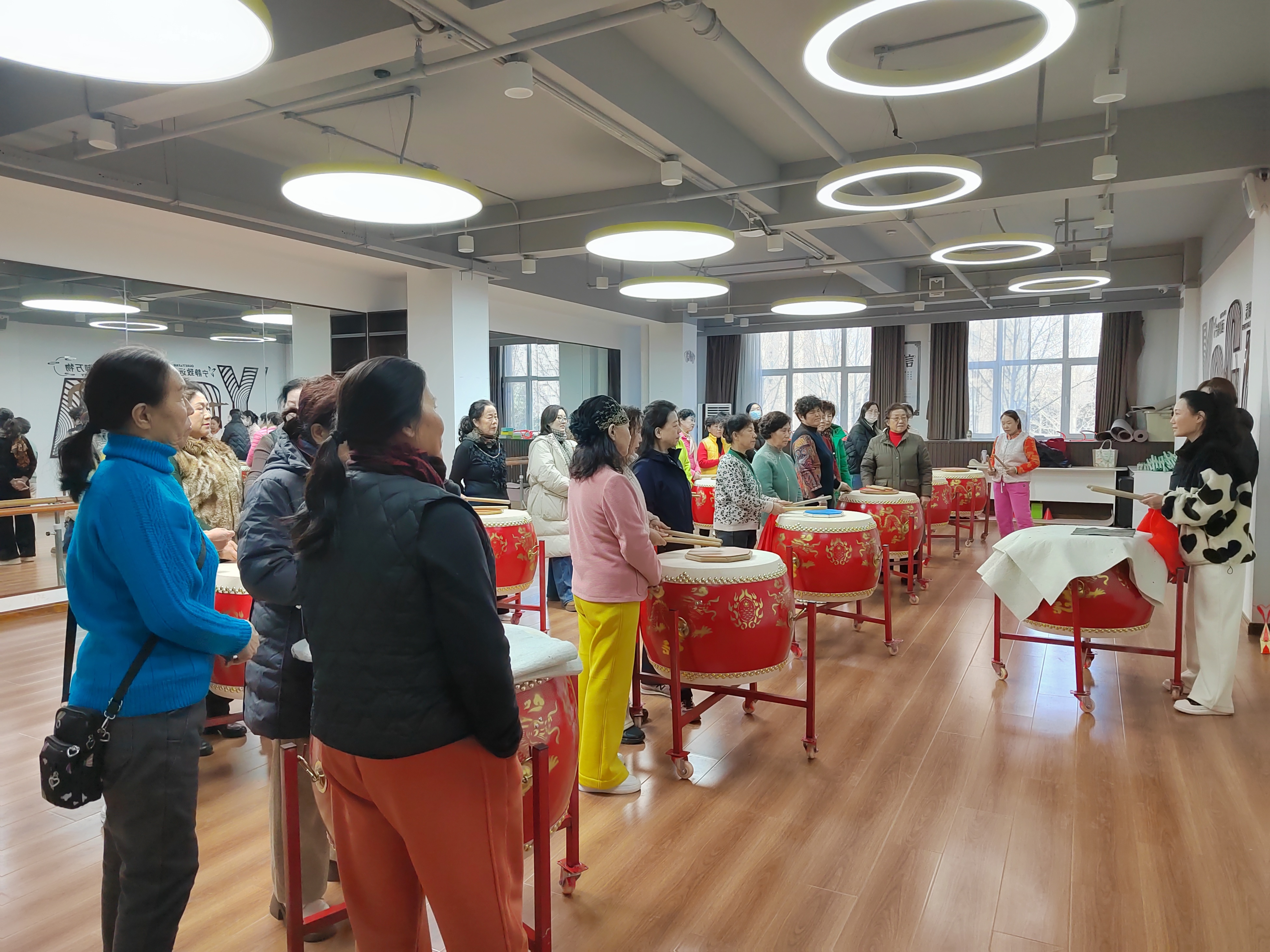 正式排练的第一天,队员们早早地来到了文化书院。他们利用业余时间,全身心地投入到紧张的排练中。尽管大多数队员都是零基础,但他们凭借着对锣鼓艺术的热爱和执着,在老师的耐心指导下,认真学习每一个动作、每一个节奏。从最初的生疏笨拙,到逐渐的默契配合,每一次敲击都凝聚着他们的汗水和努力。