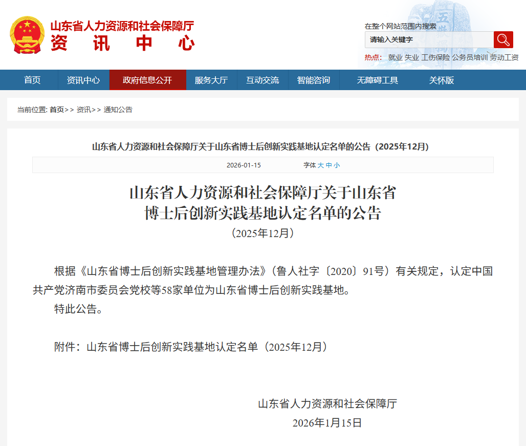 近日,山东省人力资源和社会保障厅发布山东省博士后创新实践基地认定名单,认定中国共产党济南市委员会党校等58家单位为山东省博士后创新实践基地,其中,潍坊4家单位上榜。山东省博士后创新实践基地认定名单(2025年12月)