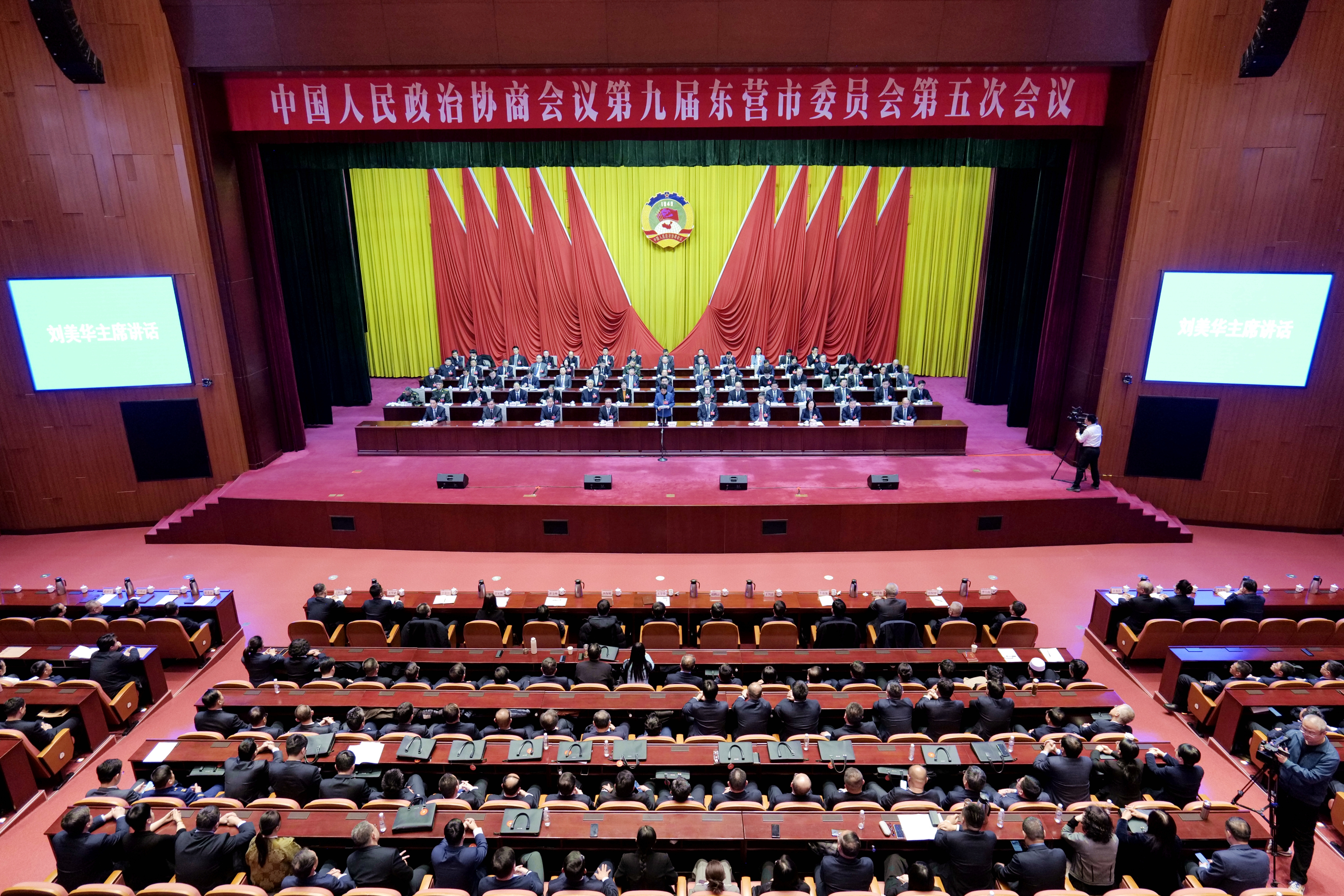 东营市政协主席刘美华,副主席生钦勇、刘志坚、冯玉峰、王新明、段鸿、王志安、郭学峰、许建仁,秘书长赵永刚在主席台前排就座。