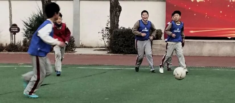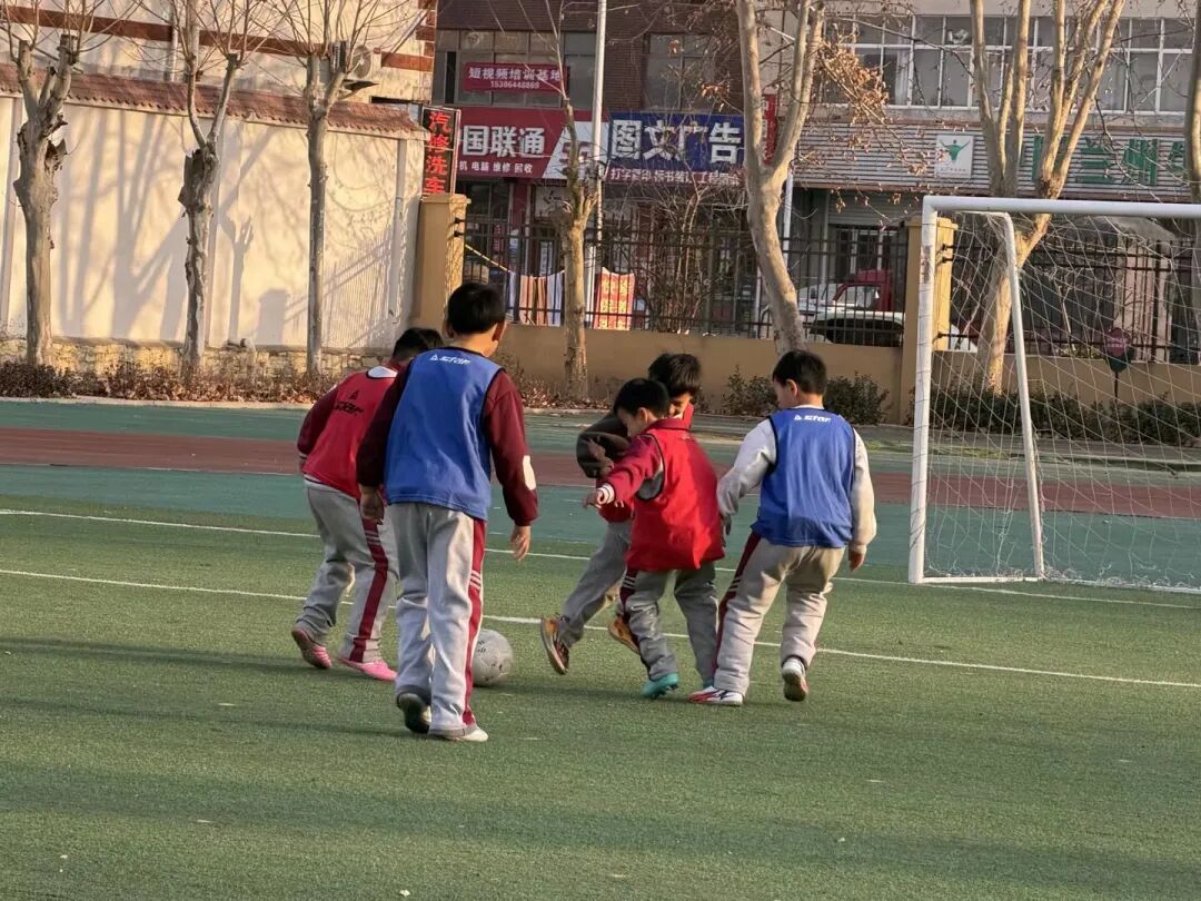 落日余晖,染红了操场,树木不见葱郁,小鸟不闻呢喃,一阵欢呼打破静谧,看呐!只见足球在脚下灵活传递,时而带球突破,时而临门一脚,欢呼声、惋惜声此起彼伏。哪怕只是一次小小的射门成功,都能让足球小将们蹦跳着击掌庆祝。这方寸绿茵场,不仅是技巧的比拼,更是快乐与友谊的传递,让课间时光欢欣热烈!