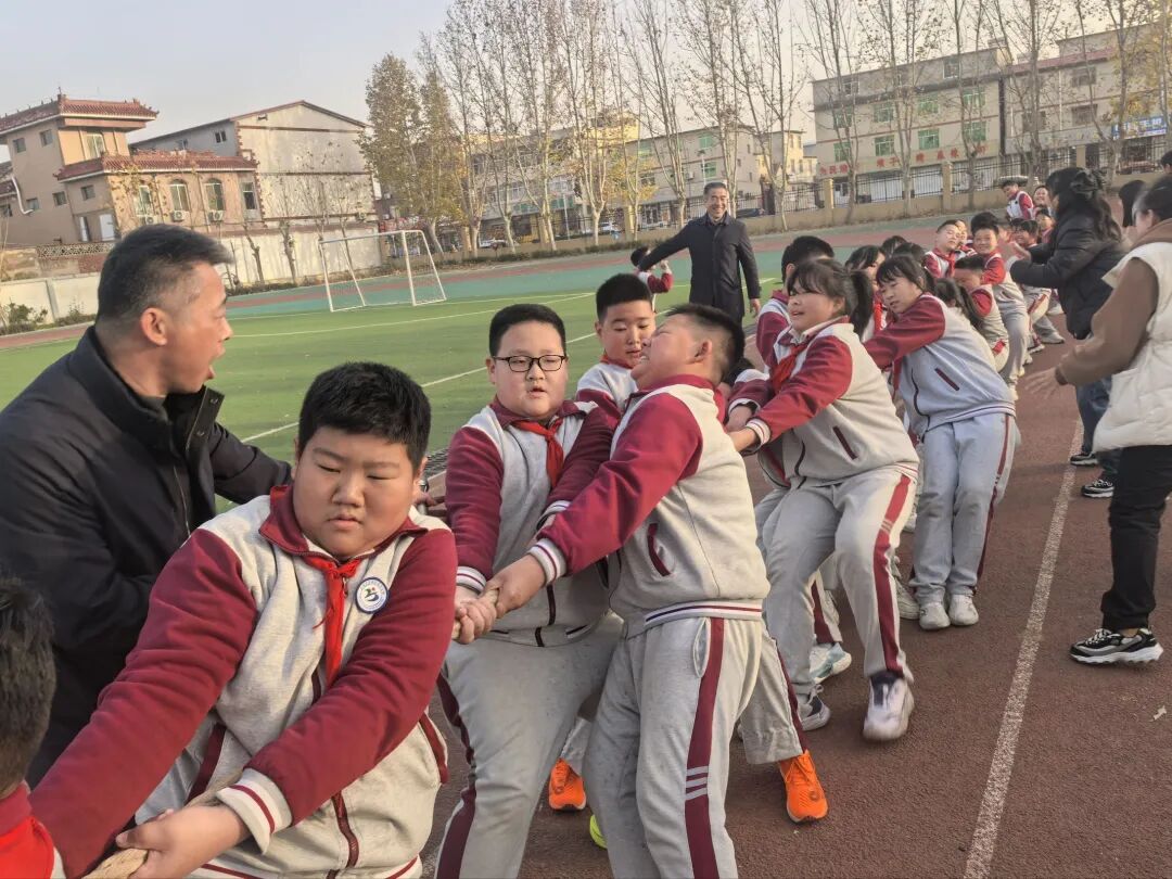 最具氛围感的,当属课间的拔河比赛!只见同学们分成两队,紧紧握住粗实的拔河绳,双脚蹬地、身体后倾,做好了全力以赴的准备。随着一声“开始”的呐喊,双方立刻陷入紧张的拉锯战。“加油!加油!”的助威声震耳欲聋,队员们咬紧牙关、憋红脸庞,使出全身力气往后拉。绳子中间的红线左右摇摆,每移动一寸都凝聚着团队的力量。无论最终胜负如何,大家都会互相击掌、开怀大笑。这场小小的拔河比赛,让同学们深刻体会到“人心齐,泰山移”的道理,也让课间时光充满了团结的温暖。