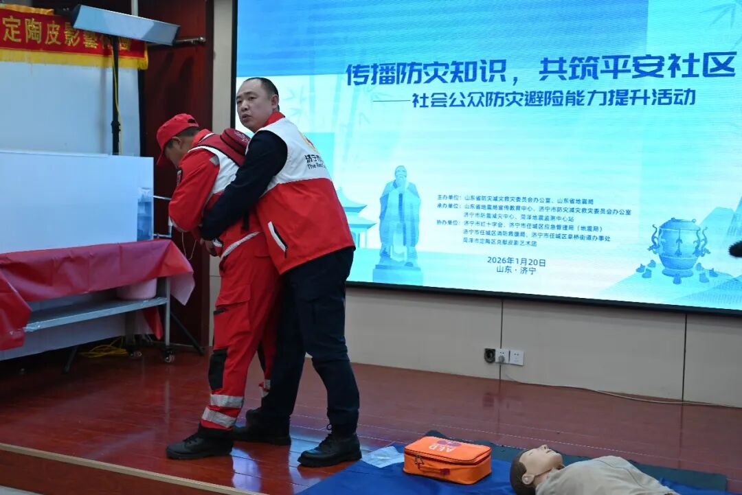 1月20日,由山东省防灾减灾救灾委员会办公室、山东省地震局联合主办,济宁市防灾减灾救灾委员会办公室承办的社会公众防灾避险能力提升活动在济宁市任城区阜桥街道解放路社区成功举办。