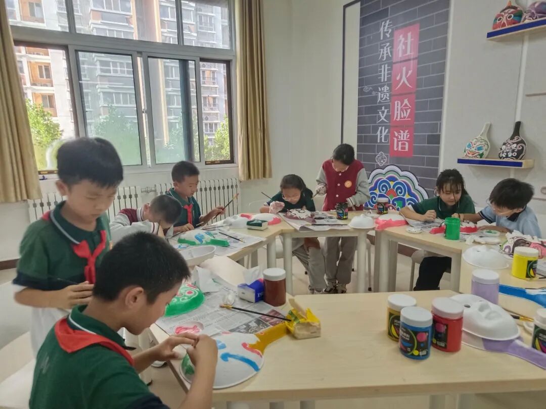“社火丹青”工作坊以社火脸谱这一民间艺术为核心,每周定期开展活动。指导老师细致讲解社火脸谱的历史背景、色彩象征意义与绘制要领,比如红色代表忠义、黄色象征威严,让学生在创作前先理解艺术背后的文化内涵。学生们兴致盎然地拿起画笔,从勾勒轮廓、调配色彩到填色描边,一步步将素净模板绘制成色彩艳丽、图案精美的脸谱作品,在动手过程中感受民间艺术的独特魅力,激发传统文化传承热情。