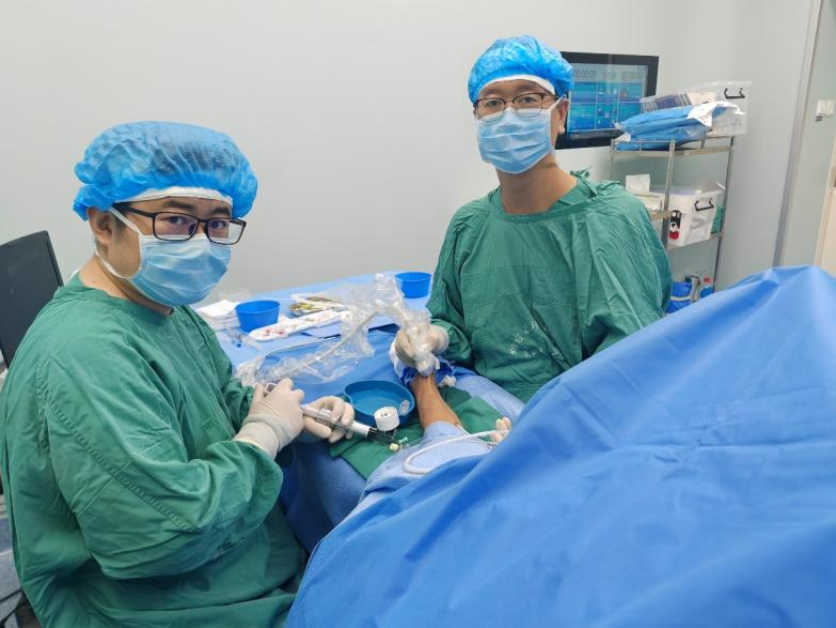 除了处理并发症,以PTA为通路“促成熟”,也能让透析患者能更快地摆脱临时导管,用上自己的血管透析。“以前很多患者做了内瘘后,要等两三个月甚至更久才能成熟使用,有些患者锻炼效果不好,血管始终达不到透析所需的‘556标准’,只能靠脖子上的临时导管过渡。”吴道诩说,而团队采用球囊促成熟技术,在超声引导下精准扩张血管,既避免了血管破裂风险,又让血管内径满足透析流量需求。“这不是拔苗助长,而是指南推荐的一线治疗方式,能帮患者尽早摆脱临时导管,用上自己的血管透析。”吴道诩解释道。