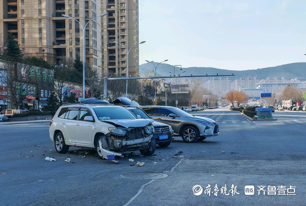 情报站|济南凤歧路两SUV相撞碎片散落一地,一车车头受损严重