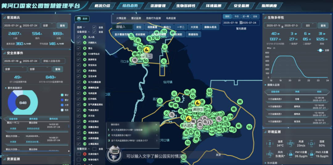 提升完善黄河口国家公园“天空地海”一体化监测网络,新建视频监控136处、物联网水气土监测点91处,接入油井监控366处,构建起陆域全覆盖监控监测网络,精细化开展年度资源环境调查、人为活动监管、油气安全保障和火情预警推送等管理活动。