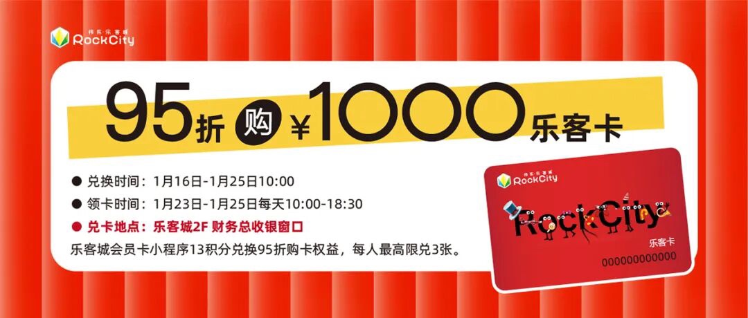 另外,咱们还有个省钱小诀窍,想要买的更划算,95折购1000的乐客城卡一定不要错过!和上面的活动可以叠加使用哦!