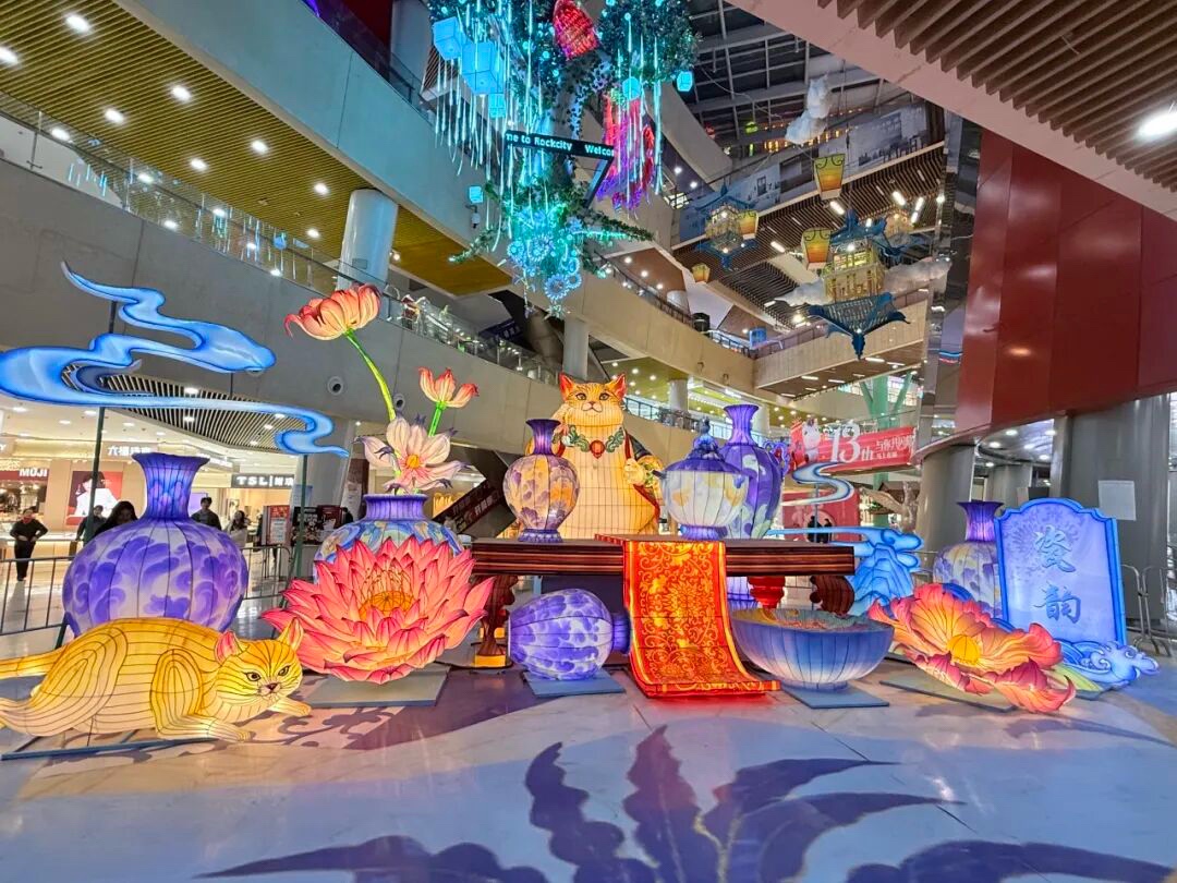 本次花灯会入口在4楼,主会场在5楼露天平台处,搭配晚上高楼大厦的灯光,非常特别!4楼小熊猫绮境区的可爱小熊猫花灯让人拔不动腿,巨型小熊猫灯组憨态可掬,肯定会成为小朋友们争相打卡的地方!