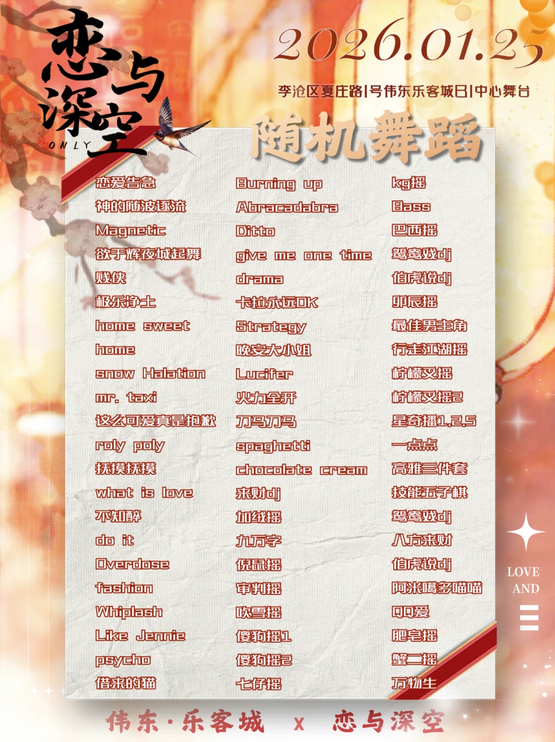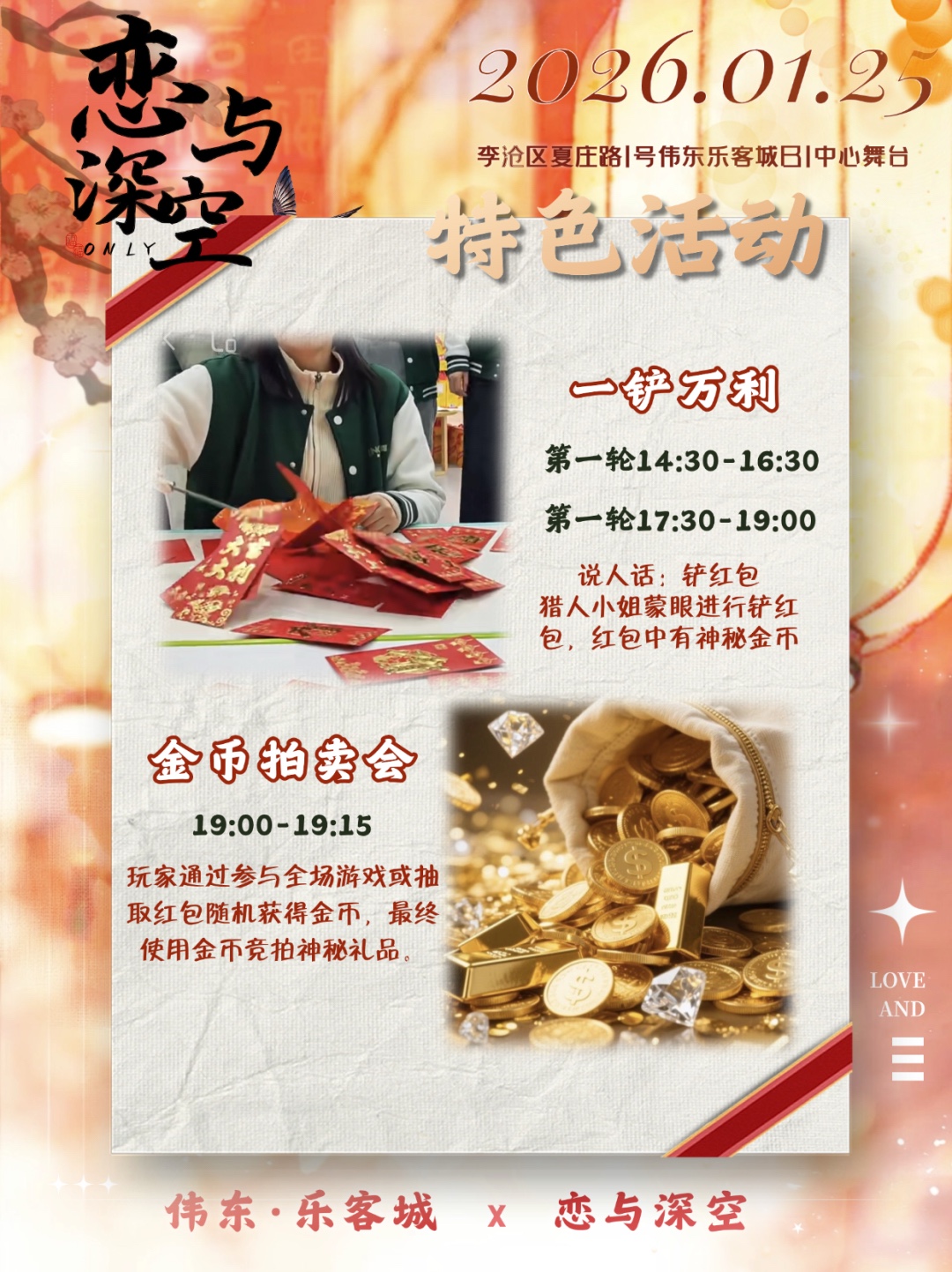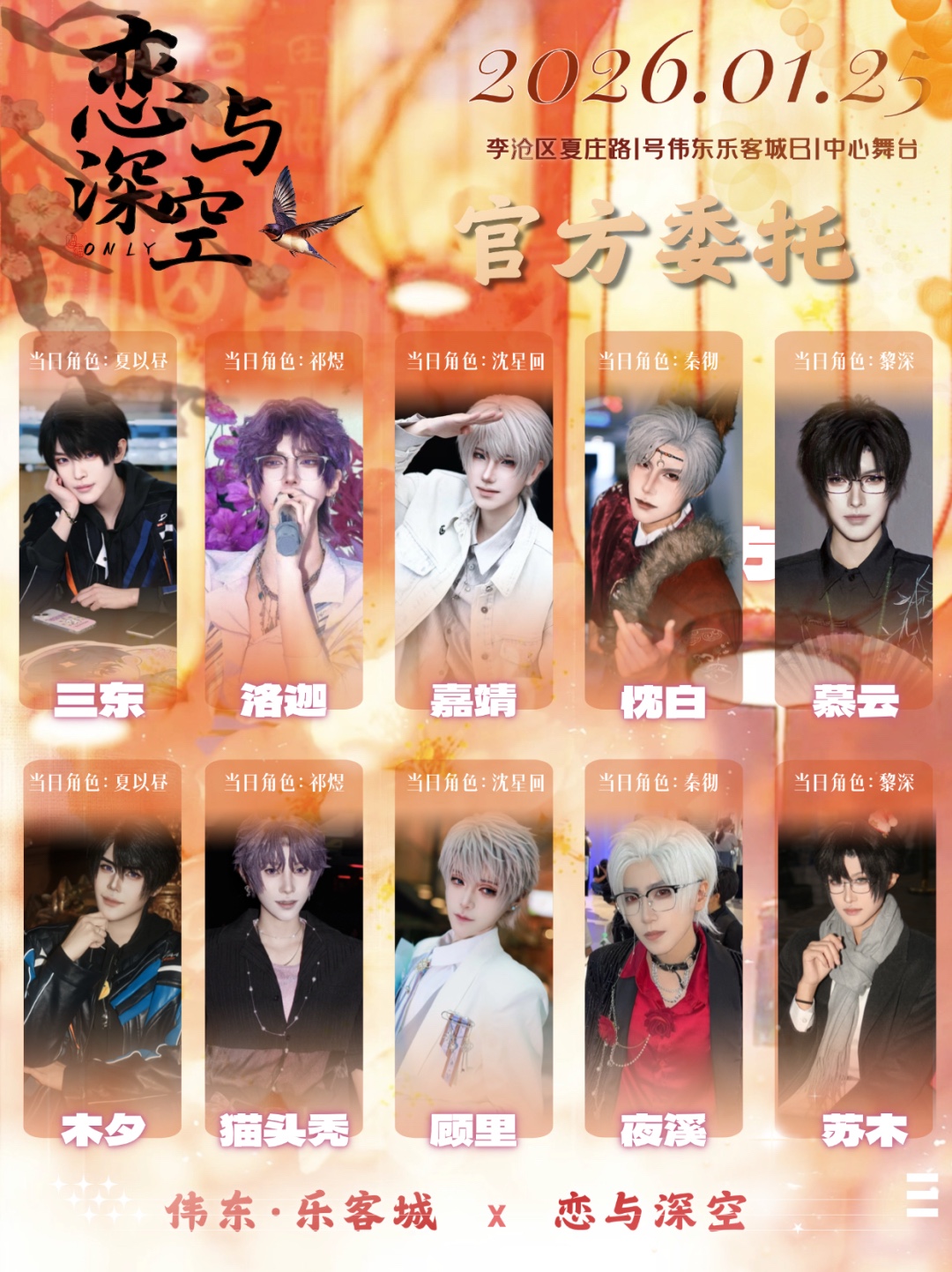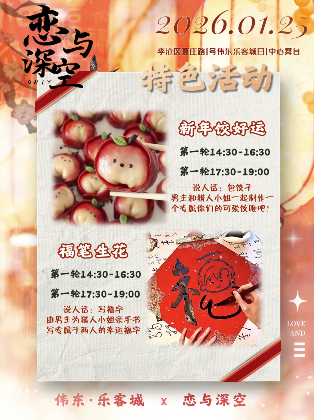本周日(1月25日),乐客城还将带来“恋与深空 暖冬同岁”活动,趣味游戏、官微互动、随机舞蹈等精彩环节,让你快乐一整天!