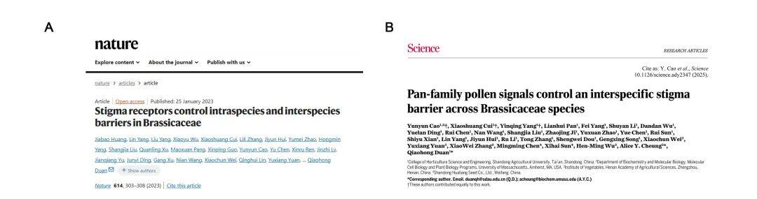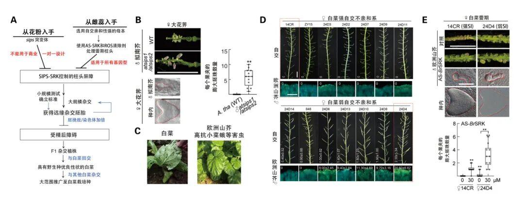 远缘杂交育种是种质创新的重要途径,但生殖隔离是远缘杂交育种的“卡脖子”难题,极大程度上限制了远缘物种中优异基因资源的开发利用。中国科协“2025十大前沿科学问题”指出,“如何利用作物野生近缘种提升栽培种抗逆特性”已成为当前农业科技领域亟待突破的关键难题。该成果在白菜等十字花科植物中发现了雌蕊柱头中用于识别远缘花粉的受体,鉴定了远缘花粉触发“隔离”的信号,并系统揭示了其生殖隔离的普遍规律。利用该成果已建立起一套高效、精准的远缘杂交技术体系,正在白菜、甘蓝、萝卜、油菜等十字花科蔬菜和油料作物育种中应用。
