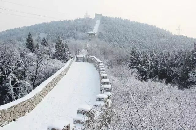 此时登顶山巅,抚摸着斑驳的墙砖,看银装素裹,天地一片苍茫,那份静谧与壮阔,足以洗涤一整年的疲惫。