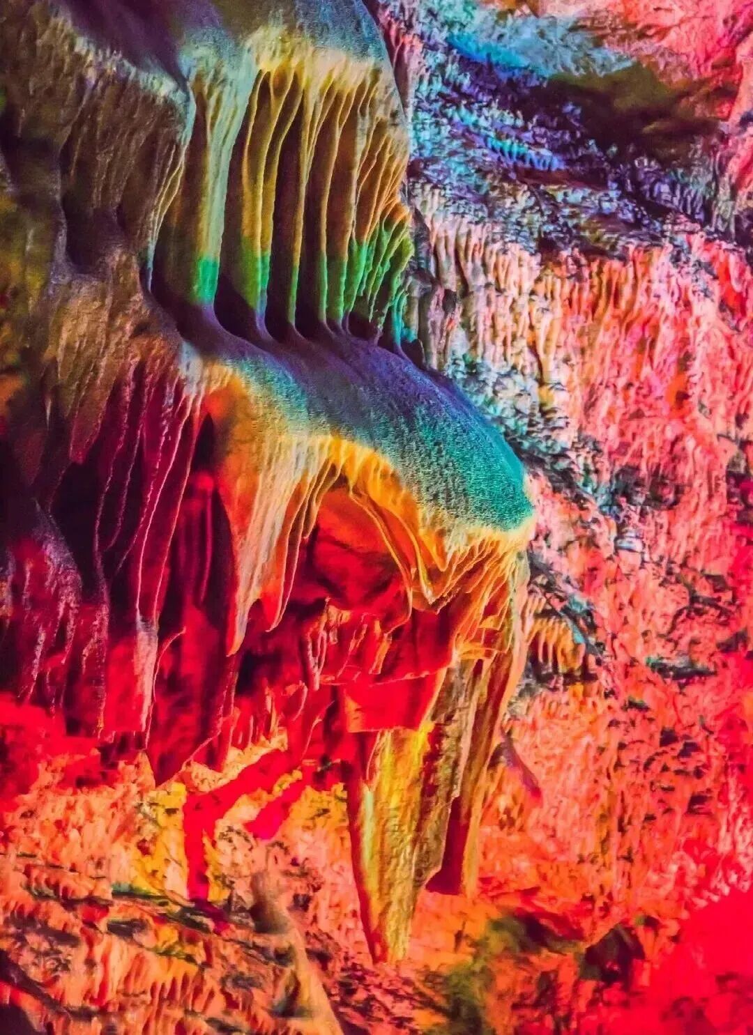 典型的岩溶洞穴,在我国北方十分罕见,洞穴全长1280米,最高处达30米,钟乳石、石笋、石幔、石葡萄、石珊瑚……千姿百态,琳琅满目,气势恢宏!