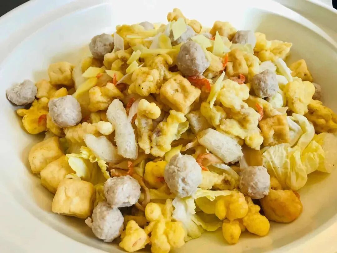 制作食材有炸肉、肉丸、海参、虾仁、粉条、白菜……一锅汇尽山珍海味、年节炸货、时令蔬菜,刚出锅的烩菜骨酥肉烂,蔬菜的甜加上汤汁的鲜,不油不腻,连吃三碗都不够!