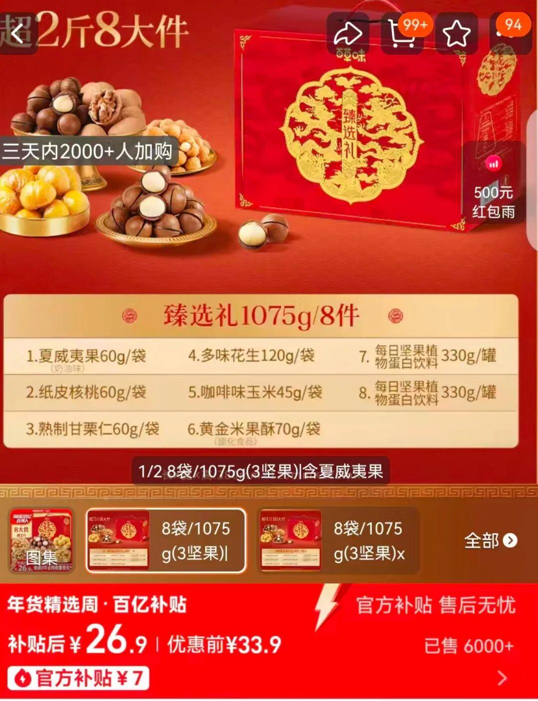 百草味958克坚果礼盒只有33克坚果,回应:非官方销售产品,是经销商特制款