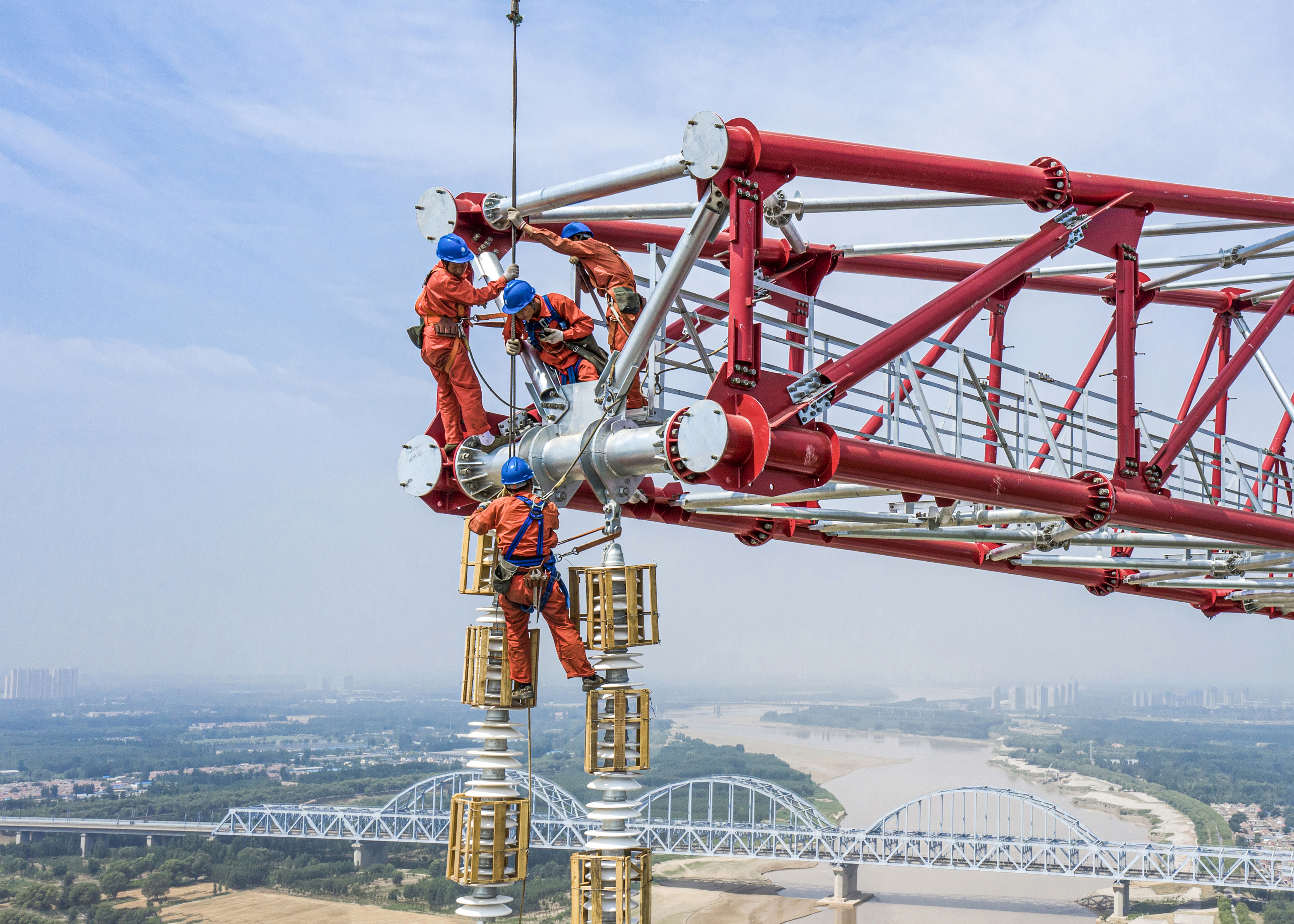 作品拍摄于济南黄河槐荫段,特高压线路架设施工。陈忠明摄点击报送作品>>>专题|“大美山东”主题活动