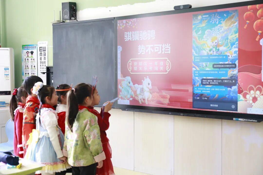 济南市市中区爱都小学低年级期末乐考趣味开启啦!孩子们化身勇敢小马驹,在“骐骥驰骋”的闯关冒险里,与AI伙伴互动诵诗,在欢声笑语中检验知识、收获自信,让期末闯关成为一场充满惊喜的成长之旅。