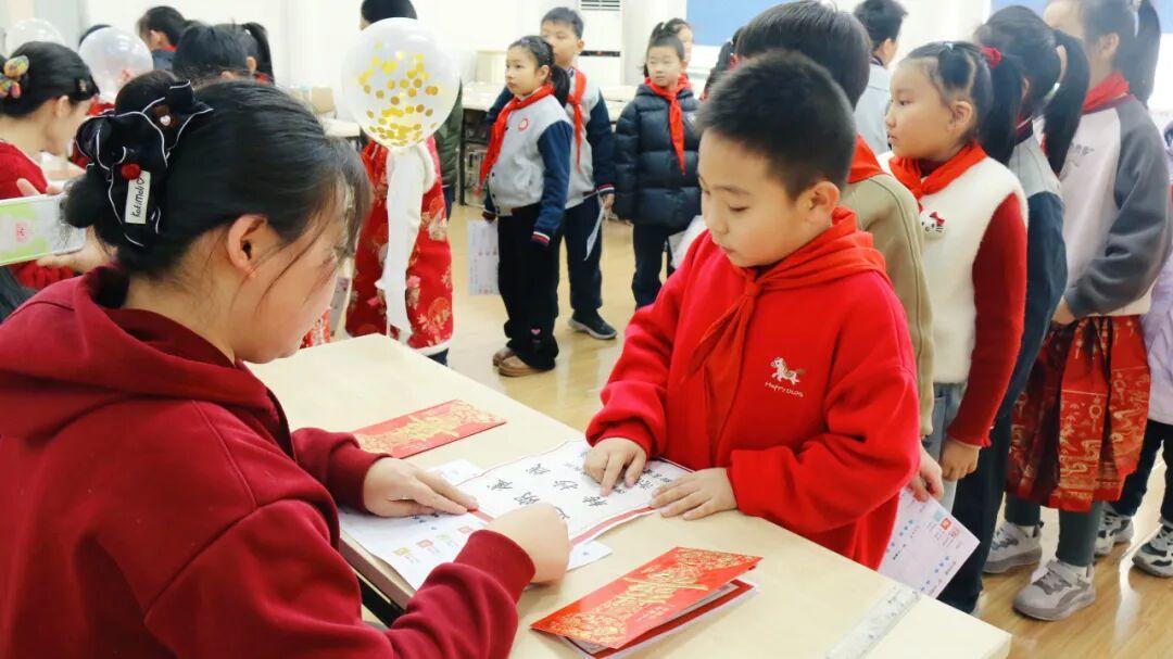 济南泉景中学小学部低年级乐考以年文化为核心,打造沉浸式文化体验考场,将文化基因传承融入测评全程。考场布置满溢年味,考题以红包、对联等新年元素创意呈现,识字加油站特设新年祝福语朗读任务,让学生在趣味闯关间感受年俗魅力。此次乐考将地方年俗非遗与家国文化融入测评,让孩子在体验中筑牢文化自信,真正实现“在乐中学,在考中悟”。