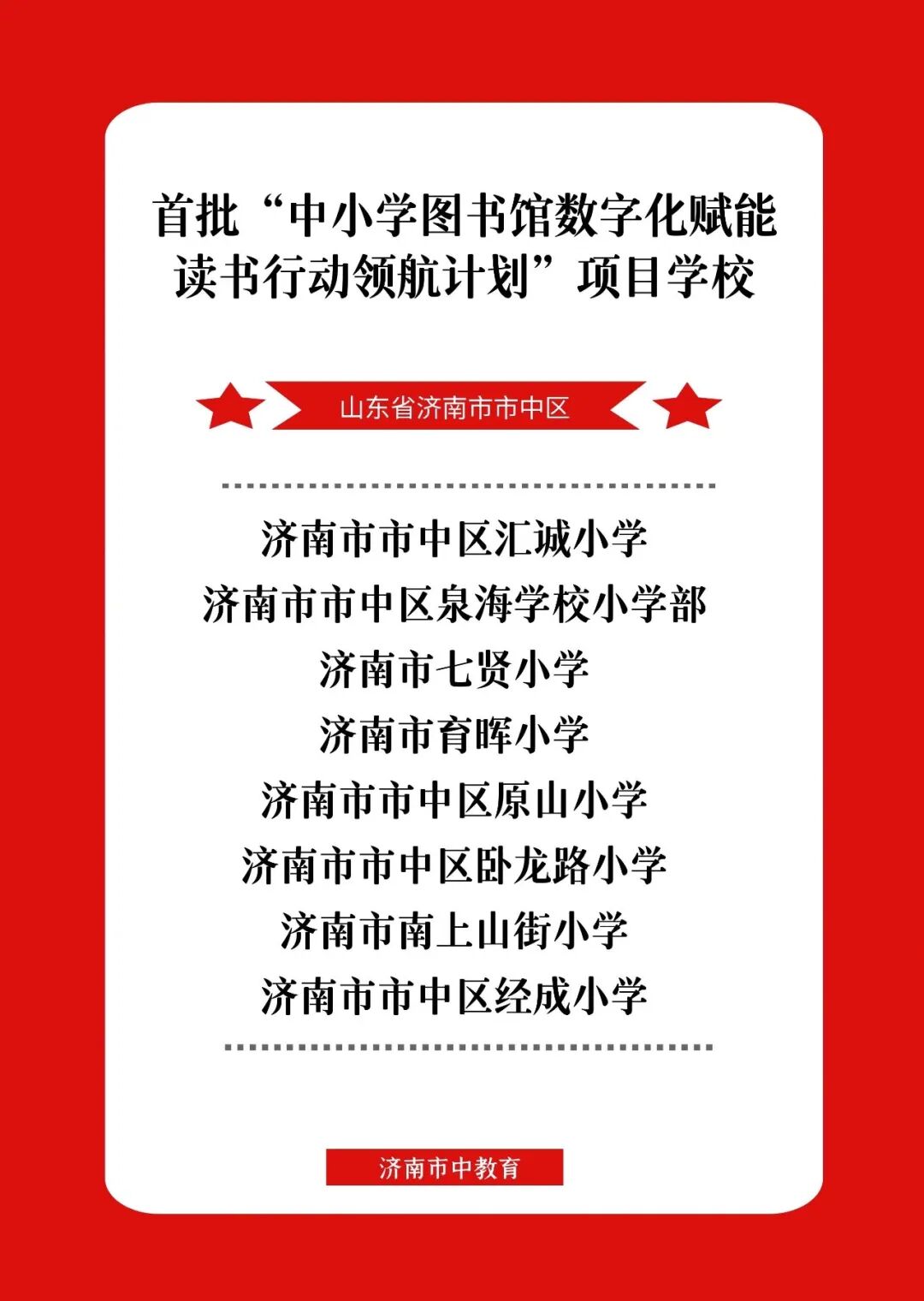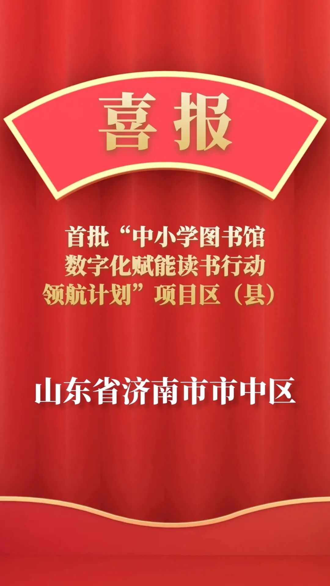 近日,教育部教育技术与资源发展中心(中央电化教育馆)公布首批 “中小学图书馆数字化赋能读书行动领航计划” 项目名单,山东省济南市市中区成功入选国家级项目区,同时,市中区8所学校入选首批项目学校,入选数量居全市第一,充分彰显该区在图书馆数字化建设、校园阅读生态培育领域的扎实成效与领先优势。一起来看入选名单——