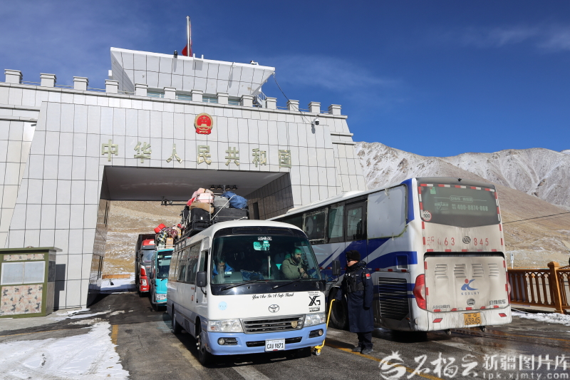2025年12月30日,出入境客车、货车进出红其拉甫国门。张楠摄