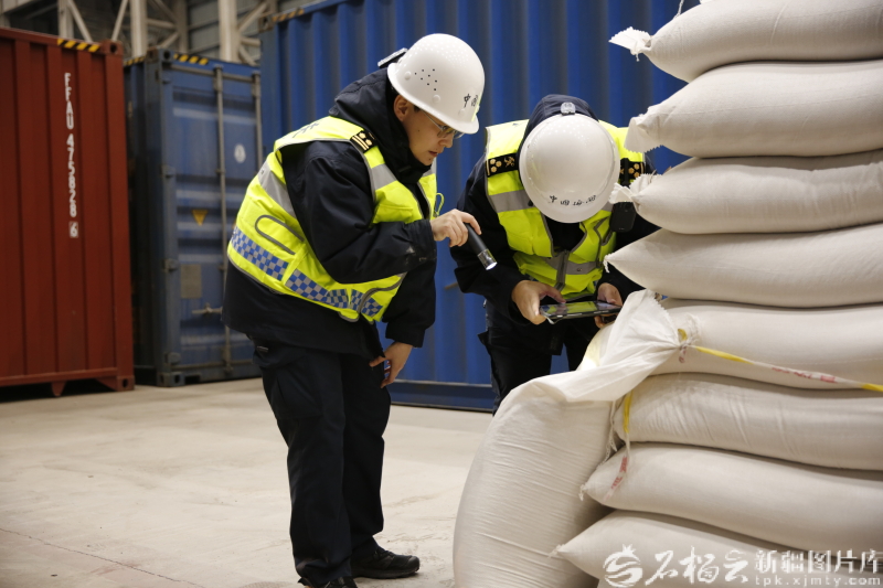 2025年12月31日,阿拉山口海关关员对中欧班列货物开展查验工作。潘嘉阳摄