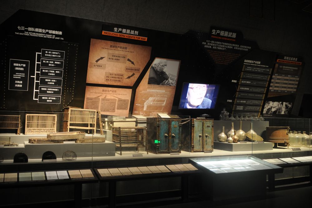 侵华日军第七三一部队罪证陈列馆内展出的生产细菌武器介绍。新华社发