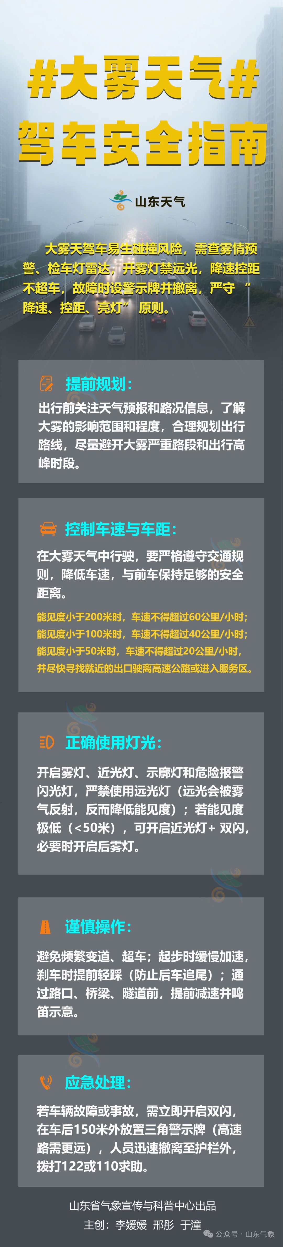 2月2日05时,山东省气象台发布陆地大雾黄色预警:目前,滨州、东营、德州、济南北部、淄博北部、潍坊、青岛、日照、济宁和枣庄已出现能见度低于500米的浓雾,局部地区能见度不足50米。预计2日早晨到上午,上述地区的浓雾天气仍将持续,请做好防范工作。大雾天气安全出行指南大众新闻·齐鲁壹点记者赵清华