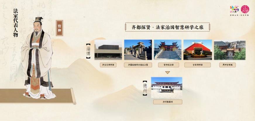 研学资源点位:【东营】孙武祠、孙子文化园——【滨州】孙子兵法城——【淄博】齐国故城遗址——【临沂】银雀山汉墓竹简博物馆——【菏泽】孙膑旅游城