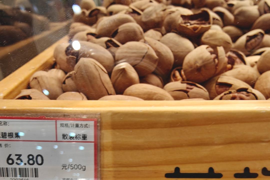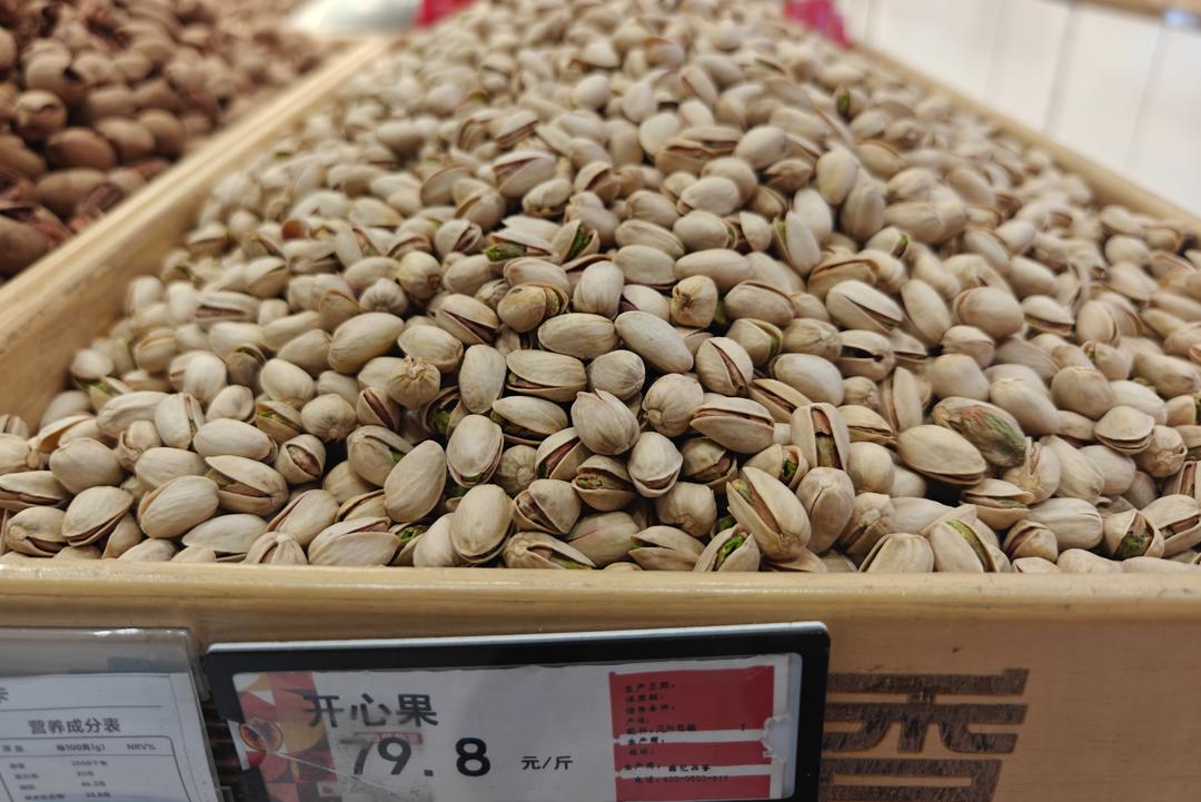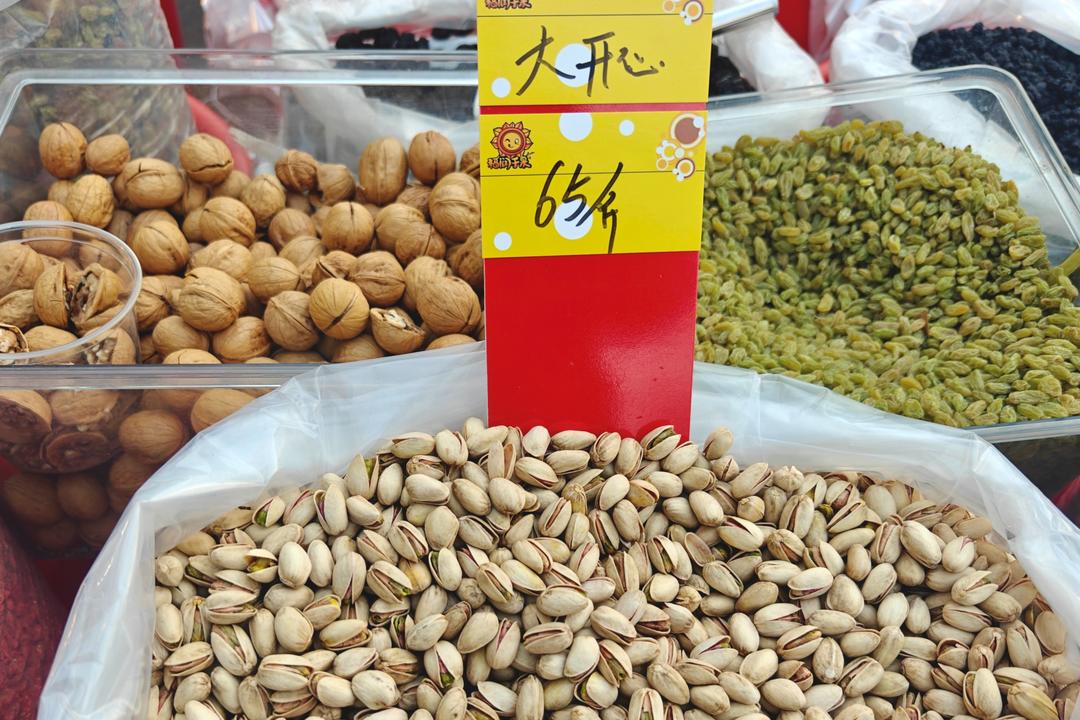 相较于连锁品牌店,北西五路的核桃家干果店价格则更为亲民。记者看到,该店干果已全部摆至店外促销,同类干果因品相不同,价格也有所区分:松子王75元/斤、开口松子68元/斤,较薛记便宜15.8元/斤;碧根果、巴旦木售价分别为45元/斤、35元/斤,比薛记低约一半;大开心果65元/斤、普通开心果48元/斤,性价比凸显。