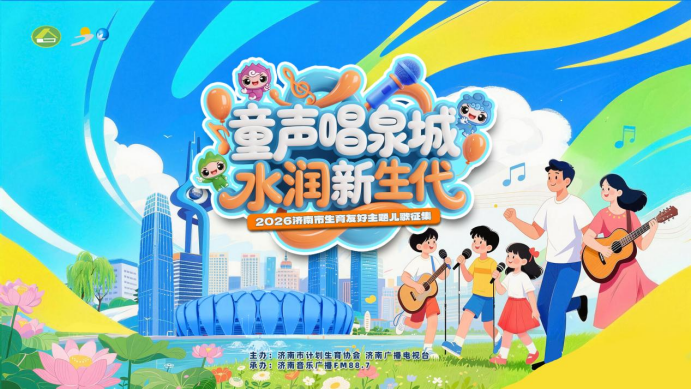 为深入贯彻落实国家关于人口高质量发展的战略部署,助力生育友好型社会建设,响应“倡导积极婚育观”的时代强音,济南市计划生育协会与济南广播电视台诚挚发起“童声唱泉城 水润新生代”2026济南市生育友好主题儿歌征集活动。本次活动旨在以童声为泉,以旋律为流,传唱适龄婚育、优生优育、育儿责任、夫妻共担的新型婚育文化观,诠释生育的价值与温暖。