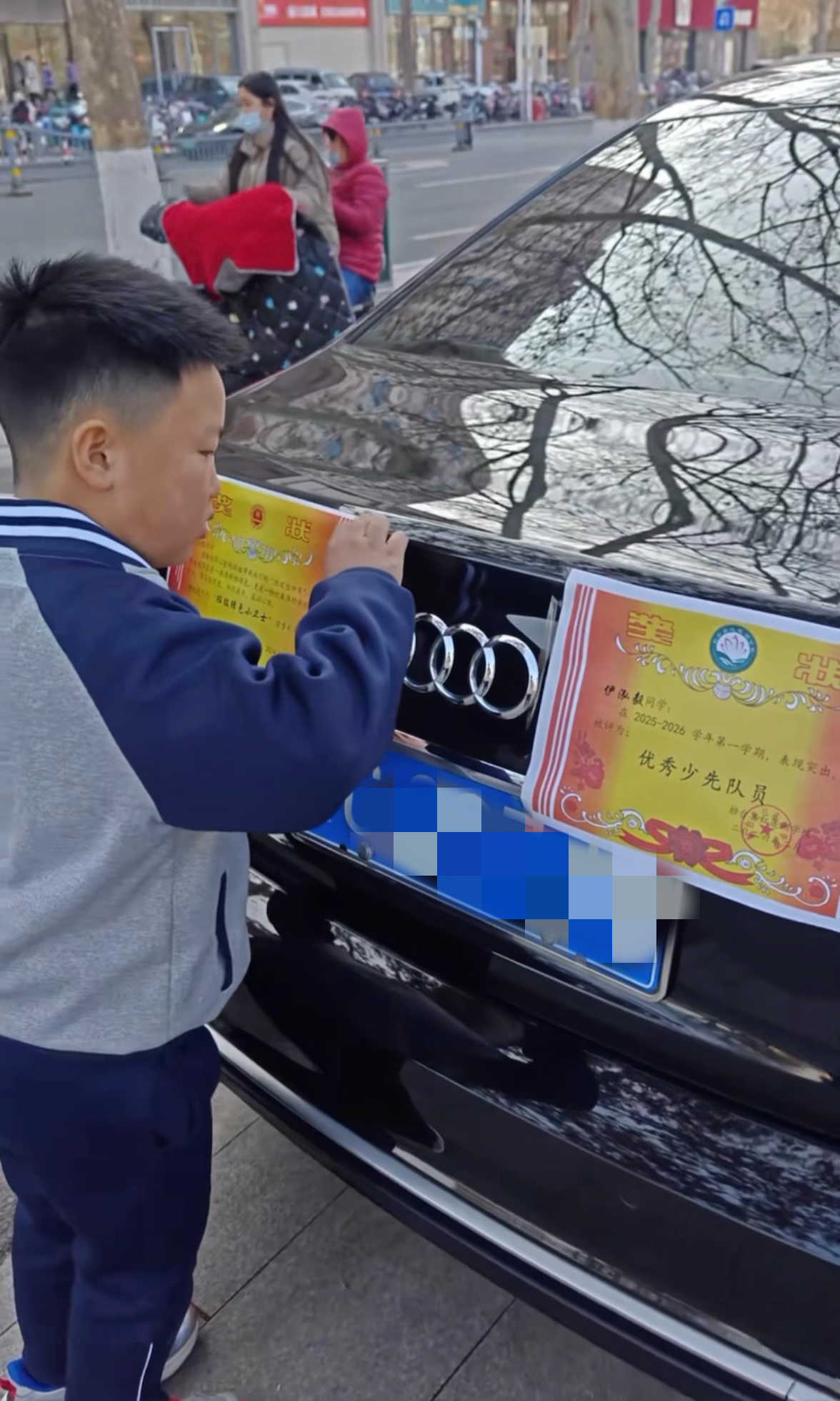 “老爸!这是我的奖状!”2月2日,淄博的小学生放寒假了,淄博桓台的小伊同学获得了“班级绿色小卫士”“优秀少先队员”奖状。其父亲伊先生激动之余,准备激励一下孩子,安排了冰淇淋、汉堡和车尾“荣誉墙”三件套。