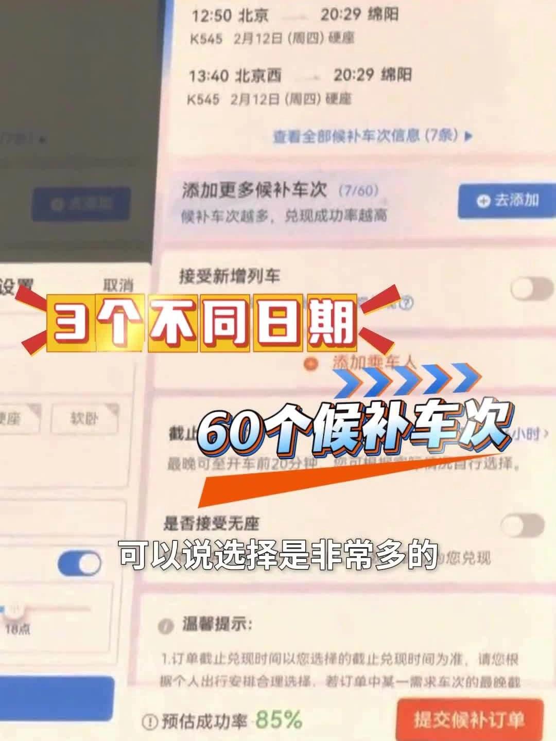 有网友发帖称通过向12306微信公众号发送“许愿候补成功”的消息,能够成功补到票。