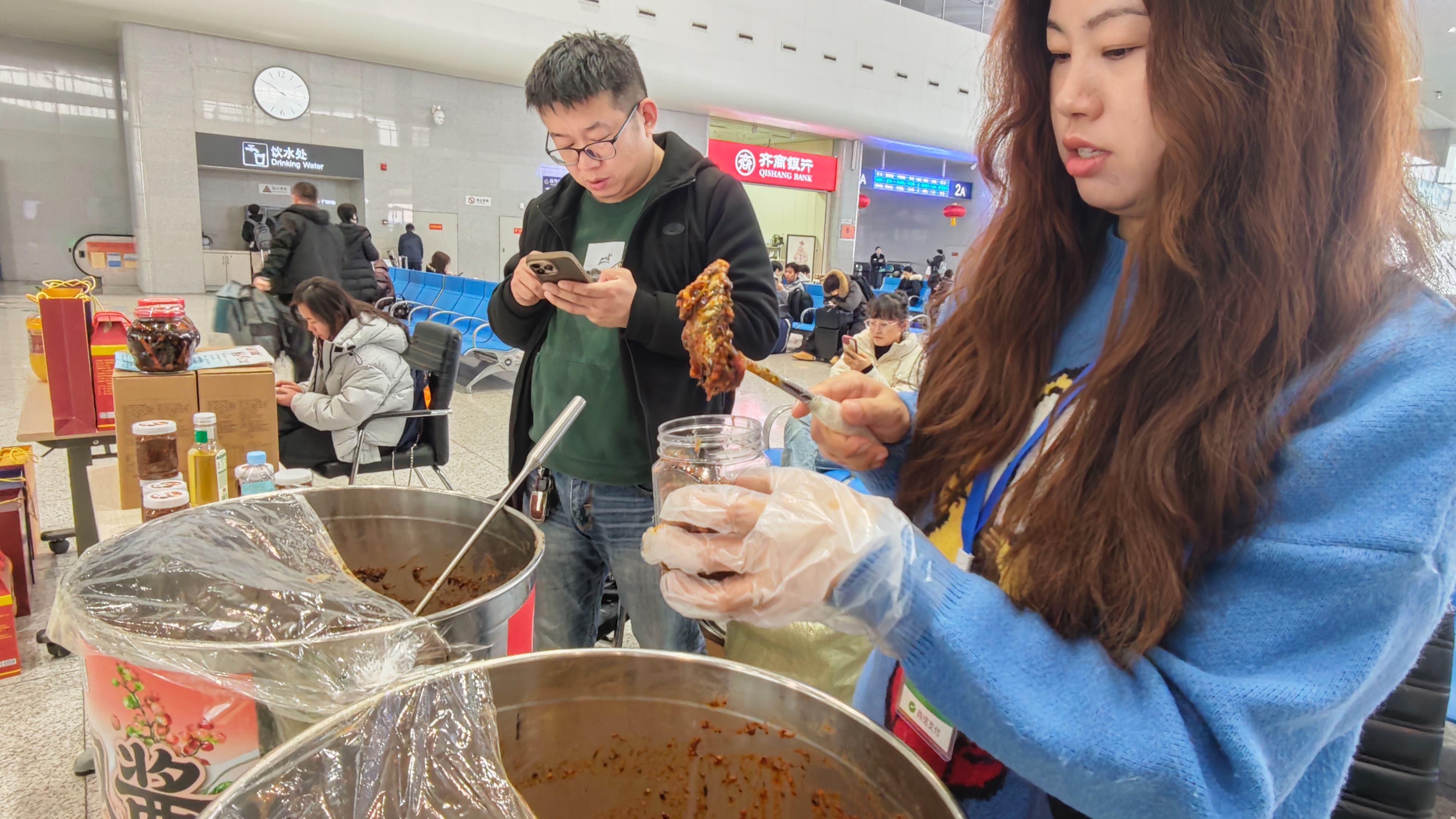 2月10日,由淄博市文化和旅游局、国铁济南局淄博北站主办,淄博市文化馆承办的2026年“非遗贺新春 寻味中国年”非遗年货大集活动在淄博北站高架候车室内启幕,为往来旅客和广大市民奉上一场兼具传统韵味与时代气息的文化盛宴。